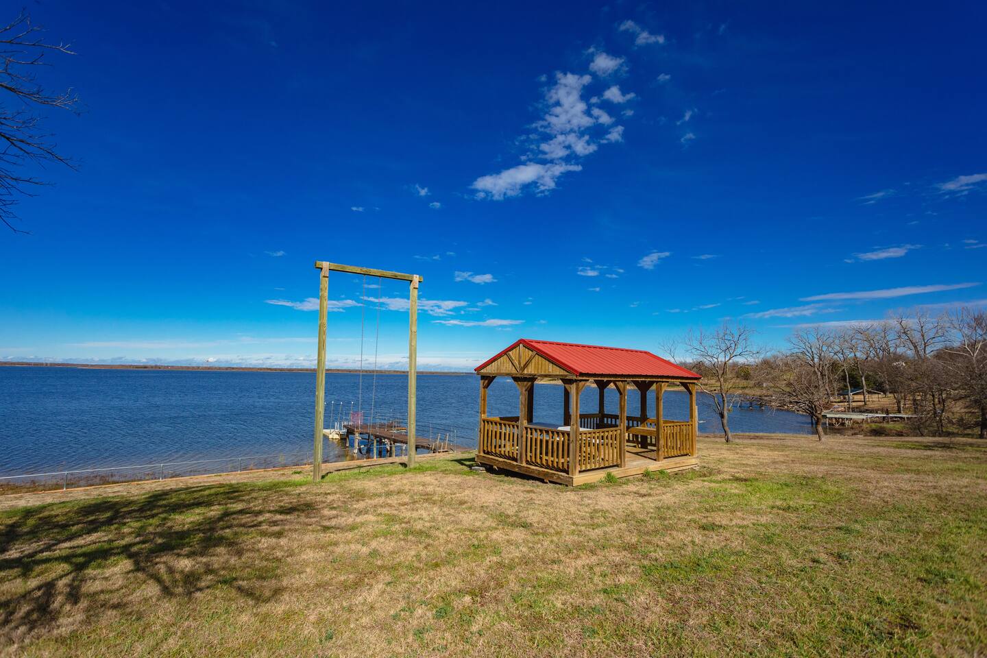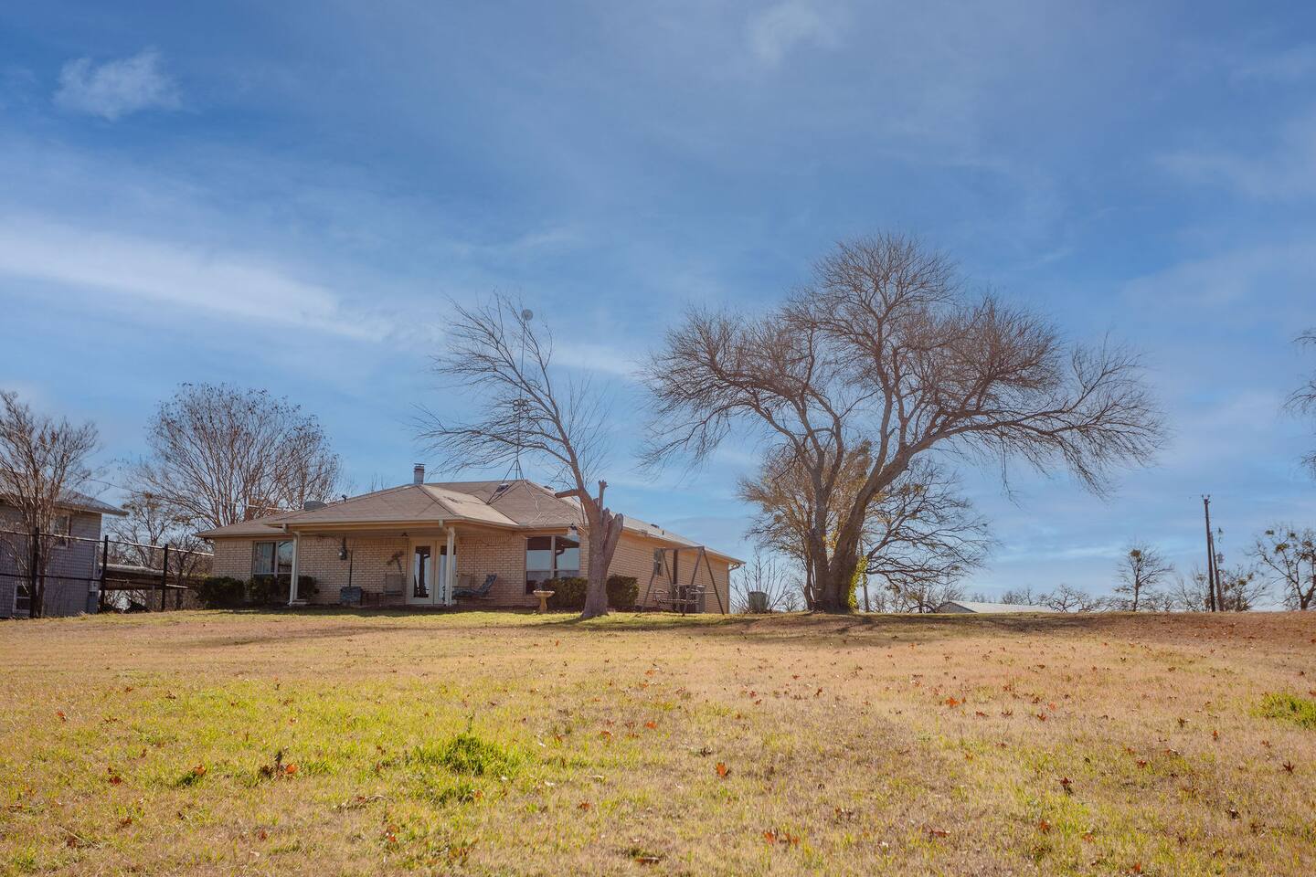 New Listing: This is a brand new listing & wonderfully remodeled home! Do not let the lack of reviews influence your booking choice! Check out our rating and management reviews to see how others have had amazing experiences with us! Bedrooms: Two comfortable bedrooms await you, providing a peaceful night's sleep for everyone in your group. Bathrooms: Enjoy the convenience of 1.5 bathrooms, ensuring a hassle-free stay for all guests. Beds: This beautiful home features three spacious beds, providing ample sleeping space for up to 6 people. Lake Access: Immerse yourself in the beauty of Tradinghouse Lake, with County Park Lake Access and a boat launching pad (usability depending on water level). Spend your days fishing, boating, or simply basking in the tranquility of the lake. Wildlife and Bird Watching: Nature enthusiasts will enjoy the wildlife that can be seen surrounding the property. Keep your eyes peeled for the tundra swan, eagles, osprey, and white pelicans that may make an appearance. Outdoor Amenities: Boat Launching Pad: Bring your boat and explore the expansive Tradinghouse Lake (Launch will be closed/open depending on water level). Outdoor Seating: Relax and unwind on the patio, taking in the breathtaking views of the lake and the surrounding nature. Nearby Attractions: Waco, Texas: Explore the nearby city of Waco, known for its vibrant culture, shopping, and dining options. Baylor University: Find yourself in the stand of the McLane Stadium or the New Foster Pavilion cheering on your favorite Bears! Magnolia Market: Visit the famous Magnolia Market for a unique shopping experience and delightful culinary treats. Cameron Park Zoo: Perfect for families, the Cameron Park Zoo is a short drive away, offering an opportunity to see a variety of exotic animals up close & personal! Escape the hustle and bustle of everyday life and create lasting memories at our lakeside haven near Waco. Book your stay now and immerse yourself in the beauty of Trading House Lake!