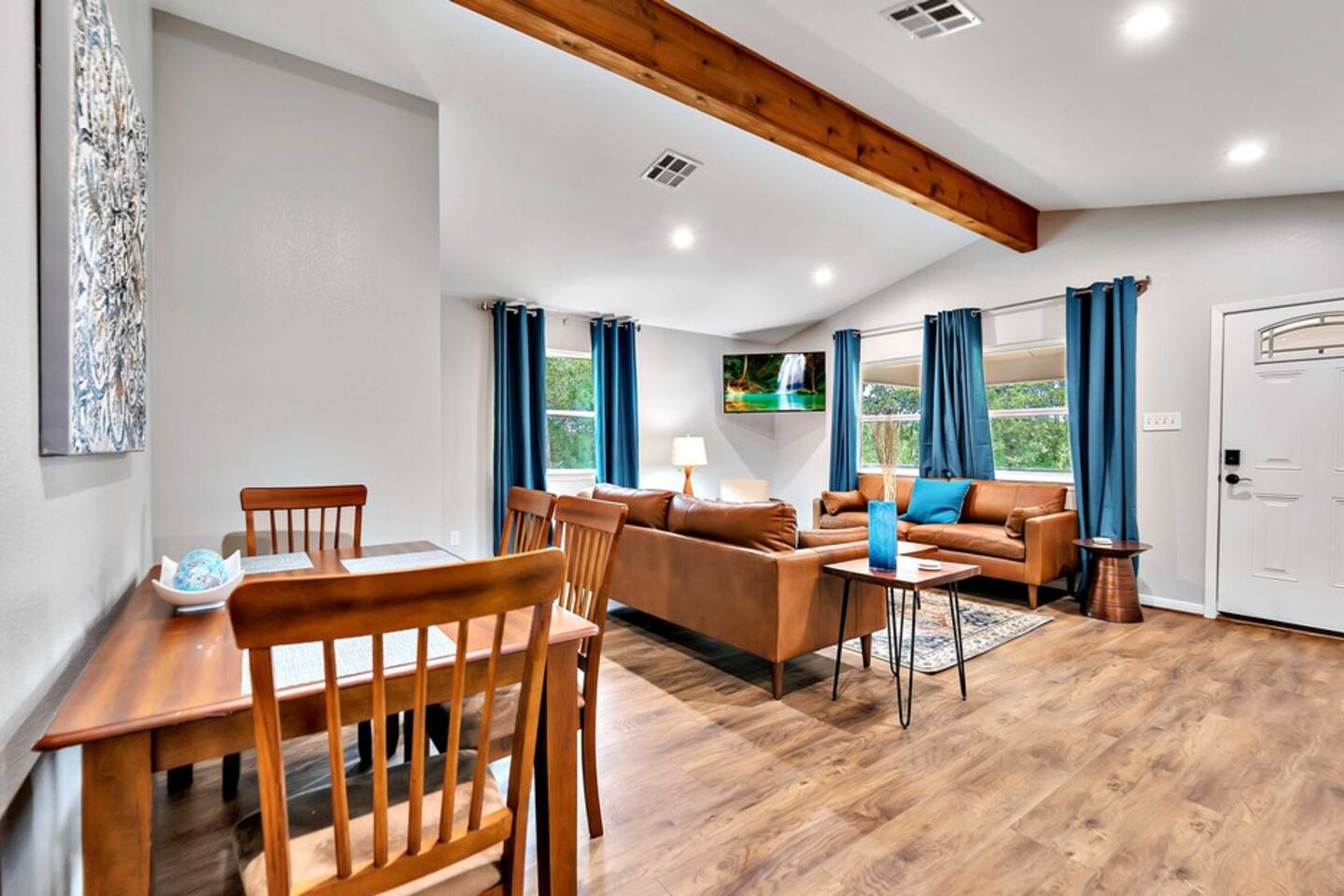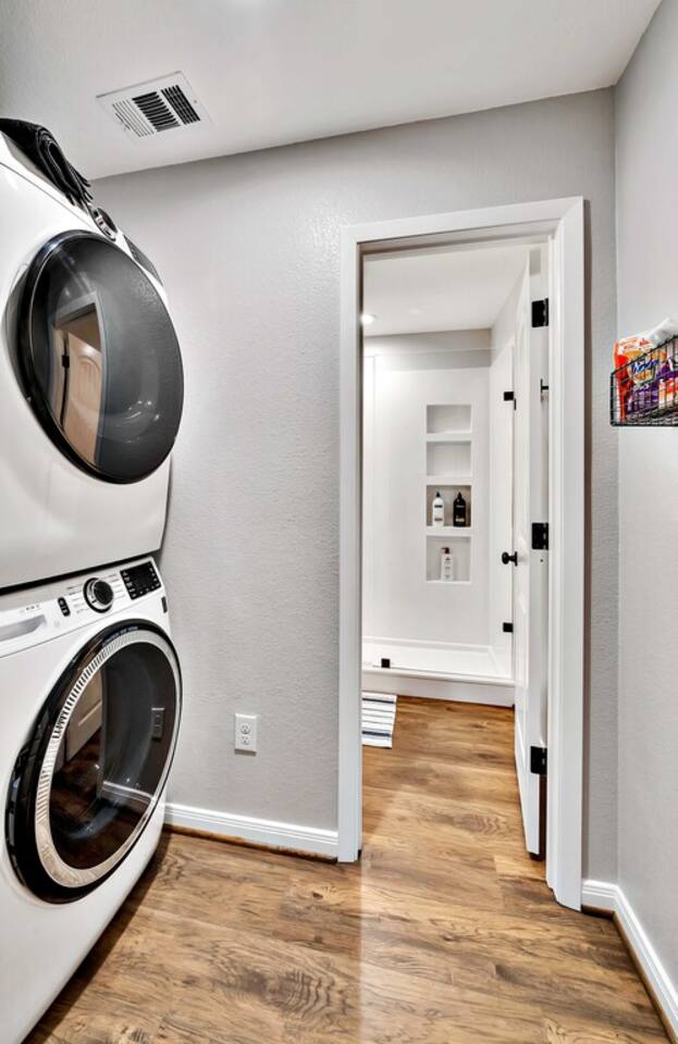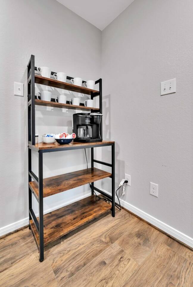 There is so much to enjoy including a large deck overlooking the Brazos River that guests are allowed to fish, the sights and sounds of wildlife, a fully stocked kitchen and more. The best part is that you are still close to downtown Waco and can get to the Silos within 15 minutes. Can this really be true? Yes!!! Come enjoy! The queen bed is adjustable and very comfortable. Both beds have Malouf bedding and pillows. The lamps besides the beds have USB ports for charging your phone. We also have a Cornhole game set up and are adding washers and other outdoor games soon.