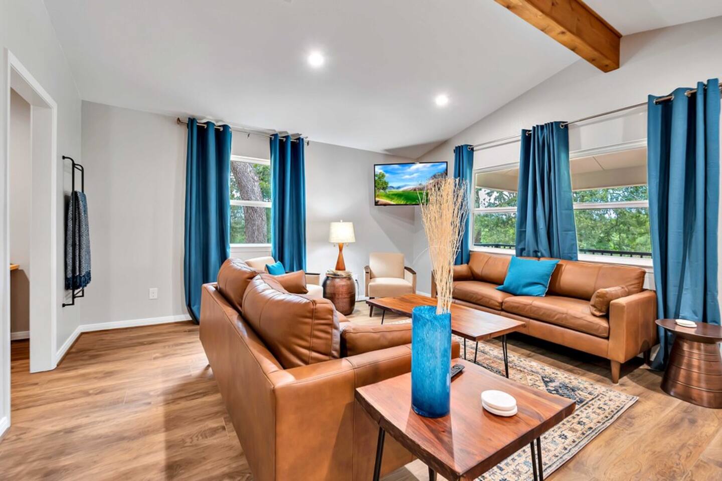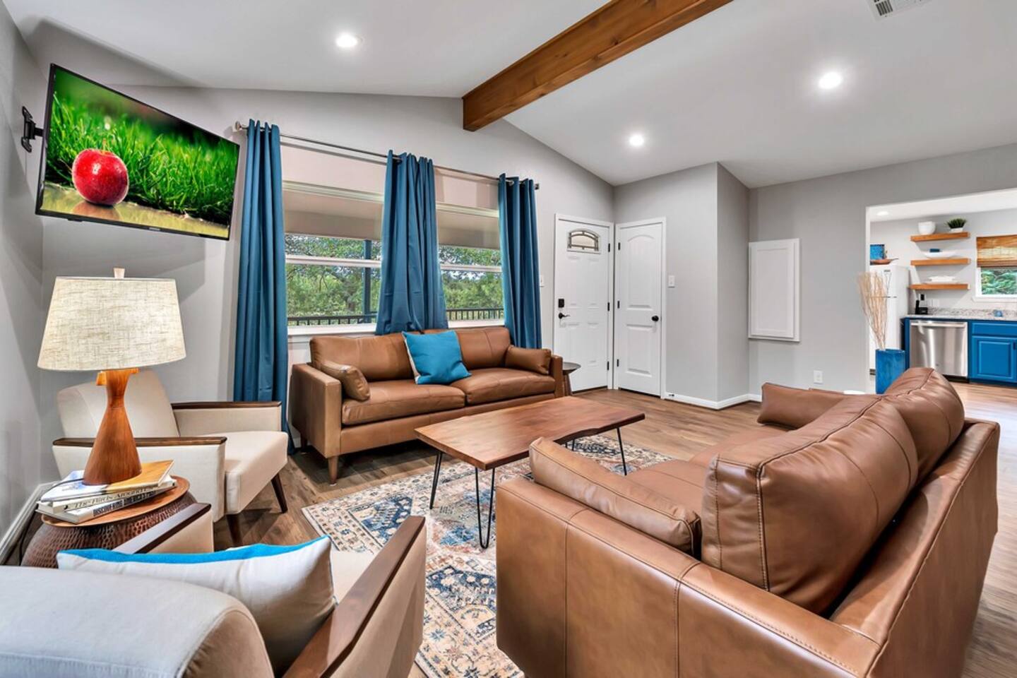The tv's available in the living and master bedroom are smart tv's with streaming apps available. We provide a Keurig Duo as well as creamer, sweeteners and pods. No cable or satellite. We have an abundance of wildlife including deer, turkey and a variety of Central Texas birds. Guest are responsible for bringing their own firewood. We pile up fallen limbs but cannot guarantee enough for your trip. Access to the river changes after heavy rains and drought. Must be 21 or older to book.