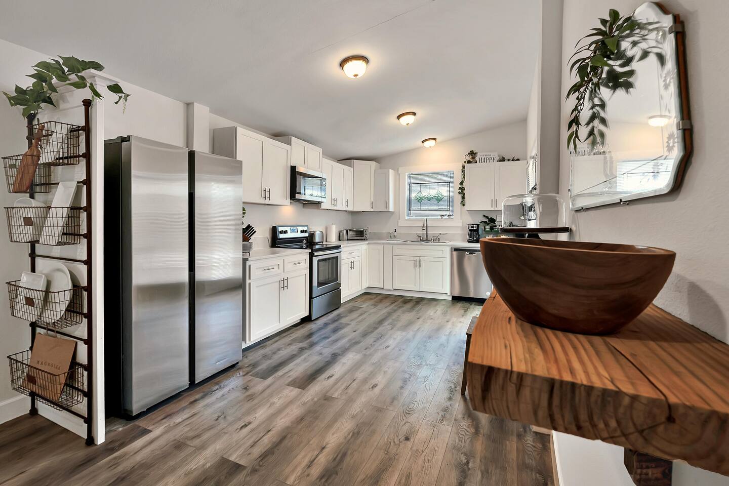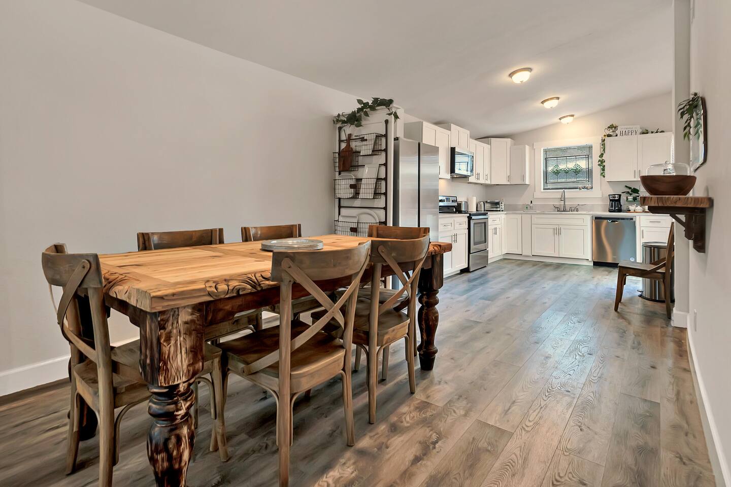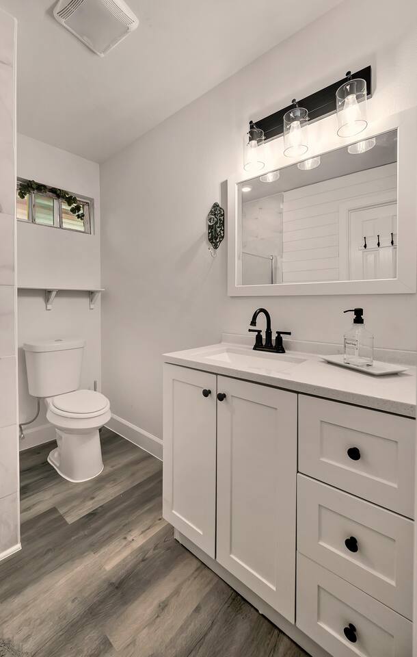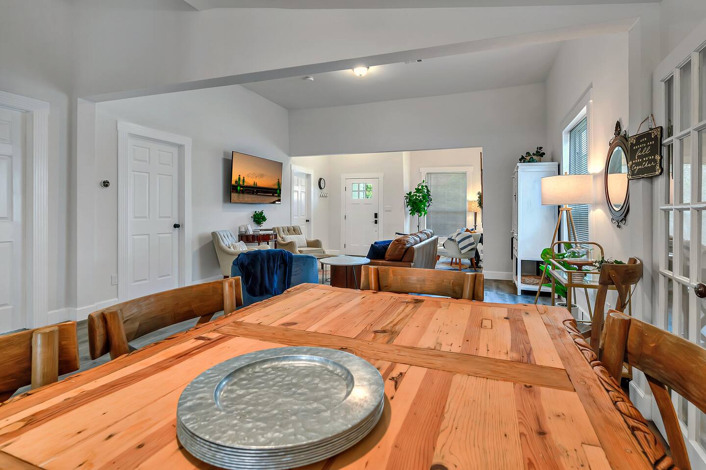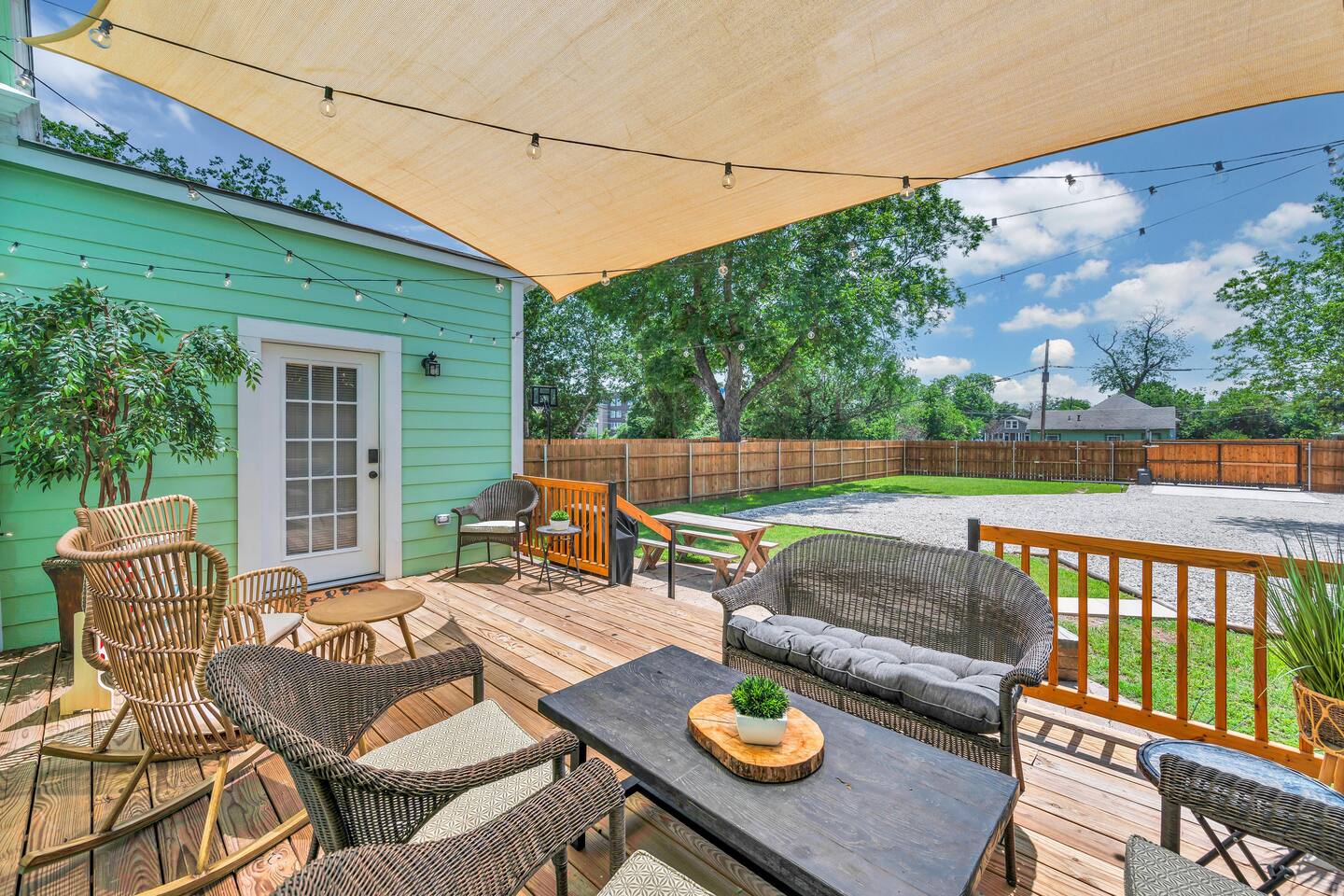 Welcome to the Cozy Mint Cottage—your fresh, stylish escape in one of Waco’s best locations. Just minutes from Magnolia, Baylor University, McLane Stadium, Foster Pavilion, the Silos, and the heart of Downtown, this centrally located gem makes it easy to explore the best of Waco without the hassle of a long drive. Whether you're here for game day, a Magnolia pilgrimage, or a relaxing getaway, this is the perfect home base. Originally built in 1895 and lovingly renovated, this 3-bedroom, 3-bath home blends timeless charm with all the modern comforts. Each spacious bedroom features its own private bathroom and dressing closet with a full-length mirror—plus super comfy beds, soft linens, and thoughtful extras to make you feel right at home. The open-concept layout includes a fully stocked kitchen, a handcrafted dining table with plenty of seating, and a cozy living room with ample seating and a 70” smart TV. The primary bedroom also includes a 40” Roku TV for winding down after a full day in the city. Outside, unwind in the large, fully fenced backyard, complete with private gated parking and a brand-new deck outfitted with rocking chairs, shade sails, and outdoor seating—perfect for a peaceful morning coffee or an evening under the stars. If location matters to you—this is the one. The Cozy Mint Cottage offers comfort, convenience, and charm just steps from the best that Waco has to offer.