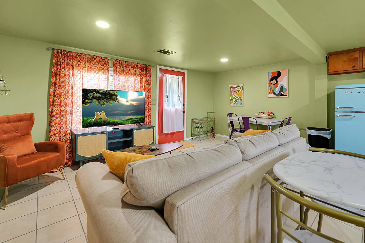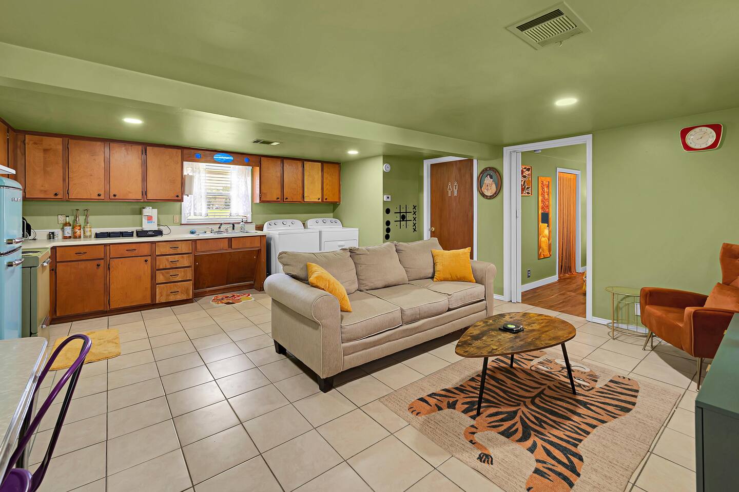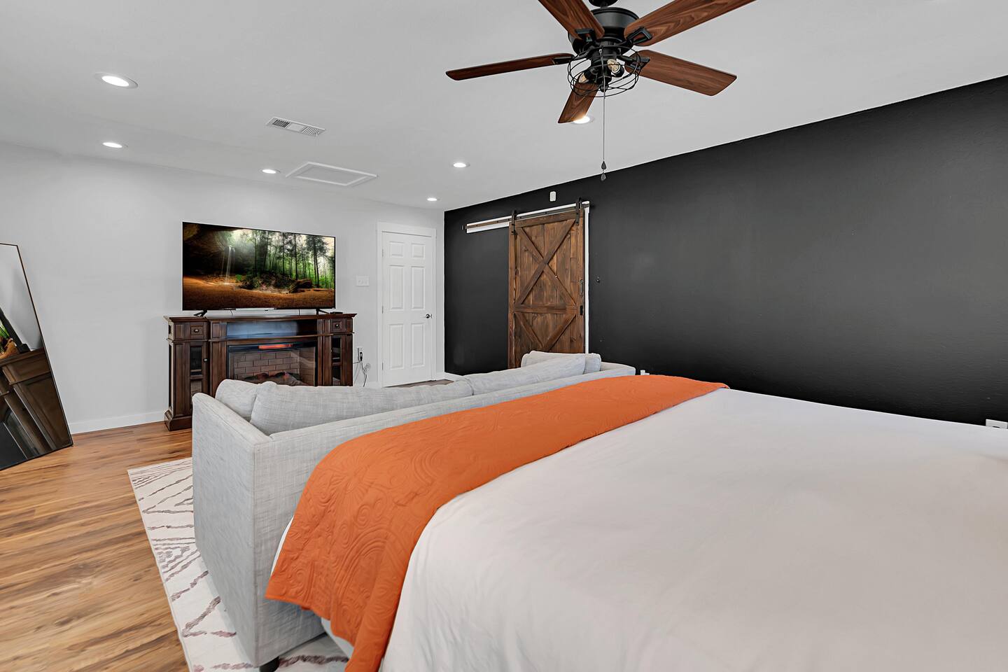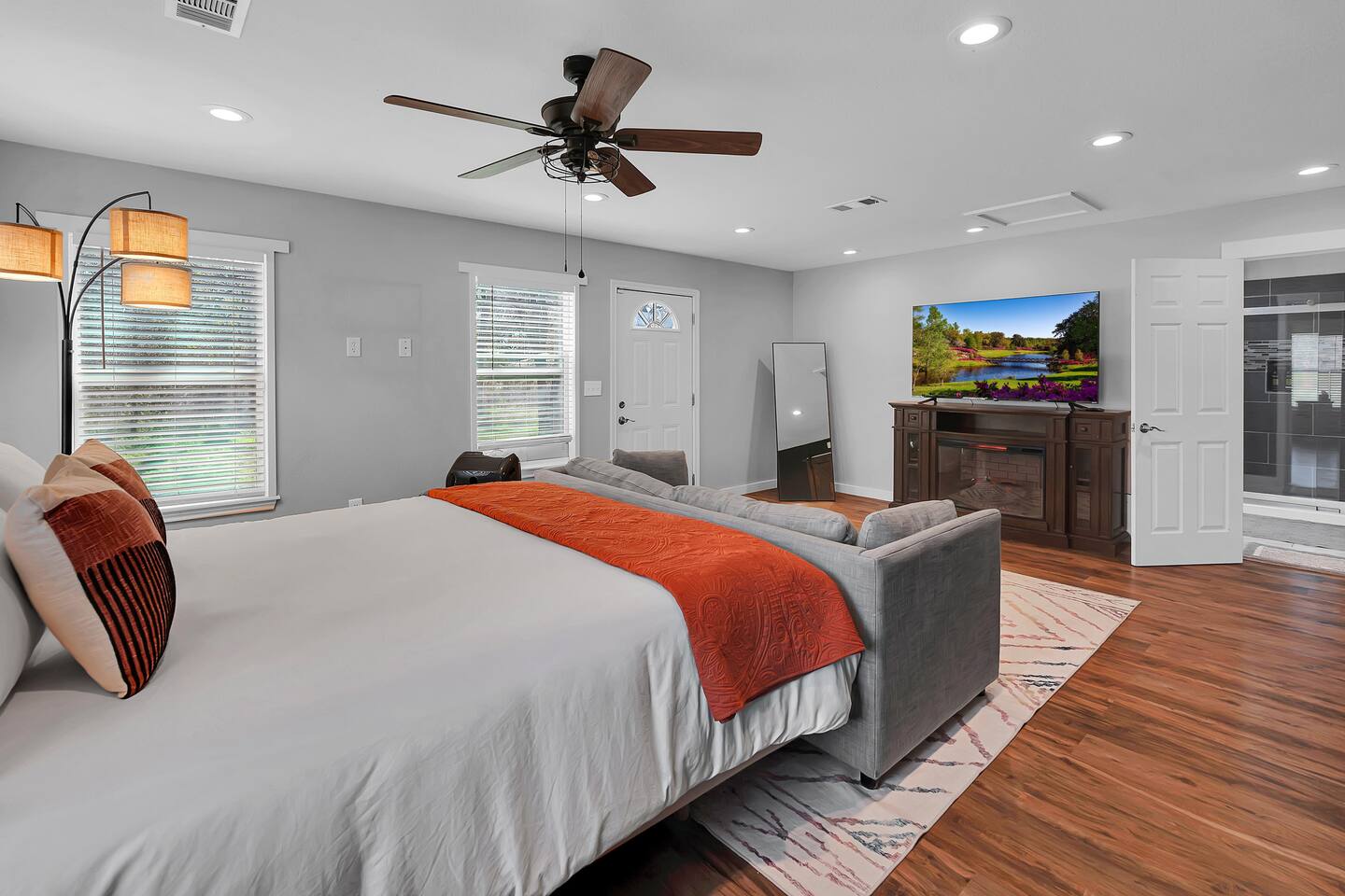 Escape to Heritage Hideaway—just 15 minutes from Waco, this private retreat sleeps 14 across a spacious main house and retro-style guest house. Enjoy wide open spaces, a huge deck, firepit, volleyball net, and peaceful country views. Perfect for family getaways, game weekends, or group gatherings with room to spread out and unwind. Pets welcome with a refundable pet fee.