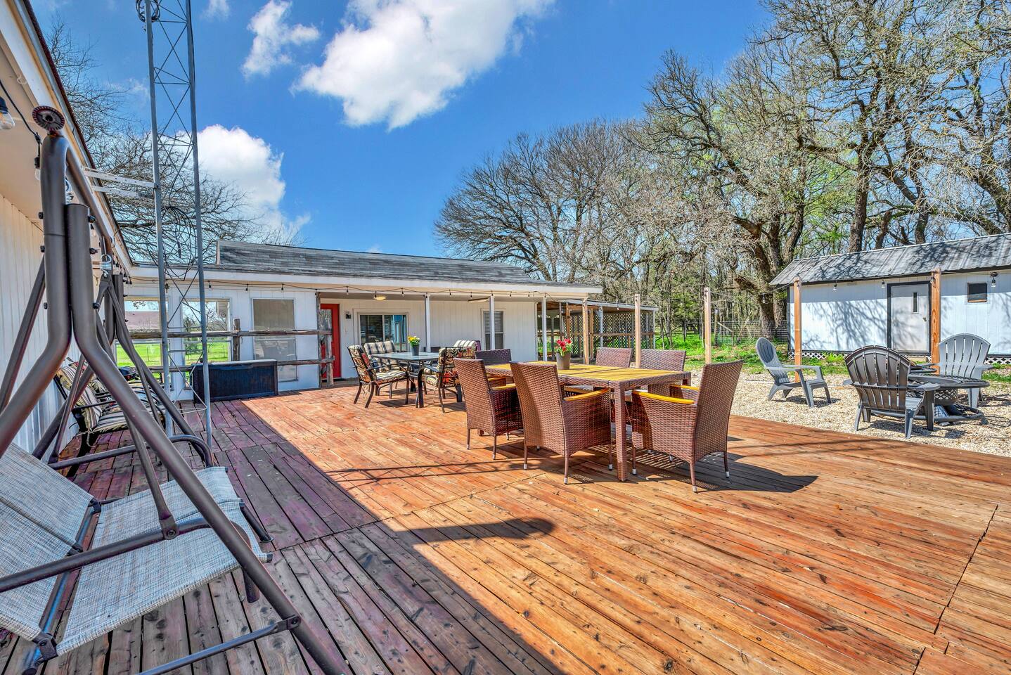 Welcome to Heritage Hideaway, a peaceful country escape just 15 minutes from downtown Waco and Baylor University. Located near Homestead Heritage on private acreage, this home is perfect for anyone seeking space to relax, reconnect, and enjoy the best of both worlds—quiet surroundings with easy access to town. The spacious main house sleeps 10, with three comfortable bedrooms, two bathrooms, a full kitchen, and open living areas perfect for gathering or spreading out. A dedicated workspace makes it easy to stay connected if needed. Just steps away, the retro-style tiny guest house adds extra charm, sleeping up to 4 more guests with its own kitchen, living area, and full bath. Outside, the fun really begins. You'll find a huge deck, porch swings, string lights, and amazing country views. Enjoy outdoor meals at the dining table, cook with the charcoal grill or smoker, and gather around the firepit when the sun goes down. A volleyball net, cornhole, and wide-open yard make this space perfect for both play and peace. Whether you're craving stillness or adventure, Heritage Hideaway is your go-to spot for a relaxing staycation, a group getaway, or a family weekend in the Waco area. Book your stay today and experience the best of Texas hospitality. This is a brand new listing but D&L Vacation Rentals has been hosting happy guests in the Waco area for 5+ years, check out our hosting rating and rest assured you will be taken care of by LOCAL, experienced hosts :) Book now and make memories at Heritage Hideaway!