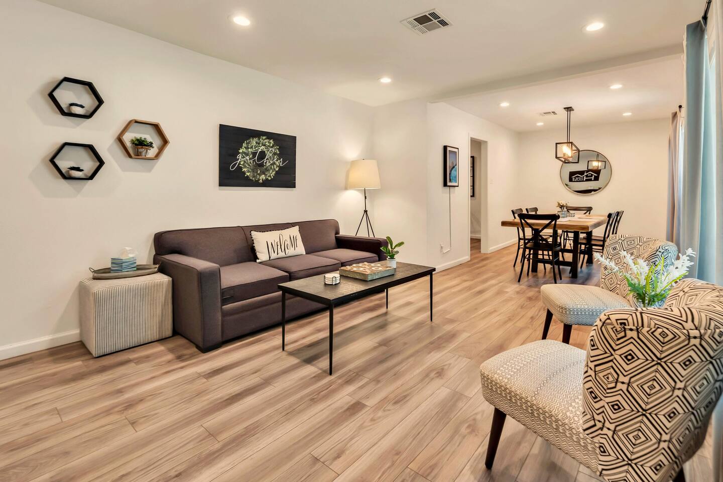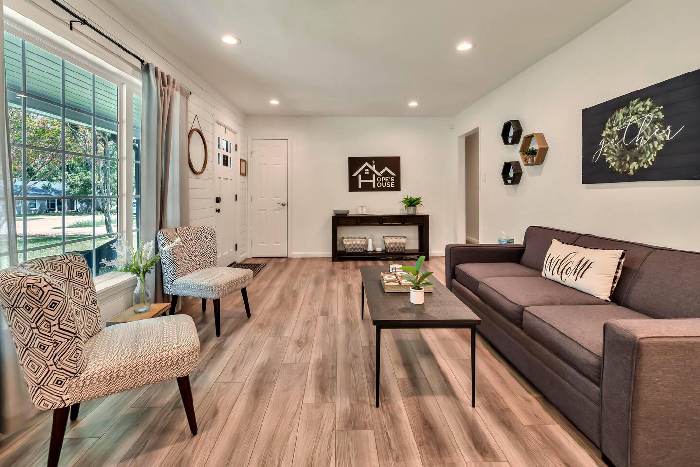 Welcome to Hope’s House—your peaceful home away from home in the heart of Waco. Located on scenic Austin Avenue, this spacious 3-bedroom, 2-bath home offers the perfect blend of comfort, style, and convenience. You’ll be close to Downtown, Magnolia Market, and Baylor University—while still enjoying a quiet neighborhood feel away from the crowds. Inside, you’ll find thoughtful design and plenty of space to stretch out. The King Suite provides a restful retreat, while the Queen Bedroom and Two Twin Room are ideal for families or friends. A pull-out couch in the living area offers additional sleeping space. Two full bathrooms are clean, fresh, and fully stocked with essentials for your stay. Step outside and enjoy the private backyard oasis featuring a picnic table for outdoor dining, a gas grill, and a fire pit with cozy seating—perfect for evening conversations under the stars. With professional cleaning, responsive local hosts, and a location that puts you minutes from everything Waco has to offer, Hope’s House is an easy choice for your next trip—whether you’re here for a game, a weekend getaway, or a family vacation.