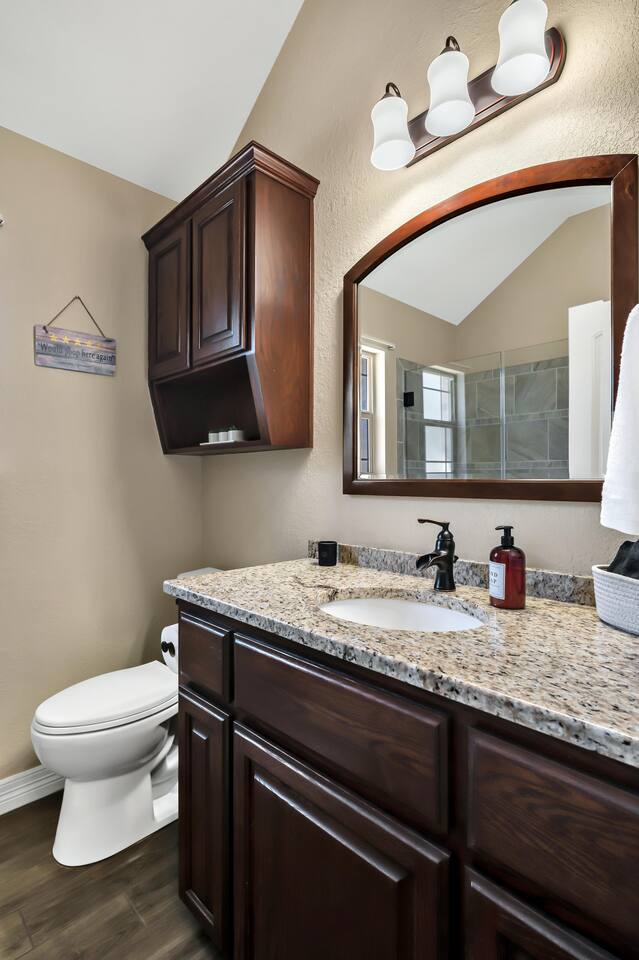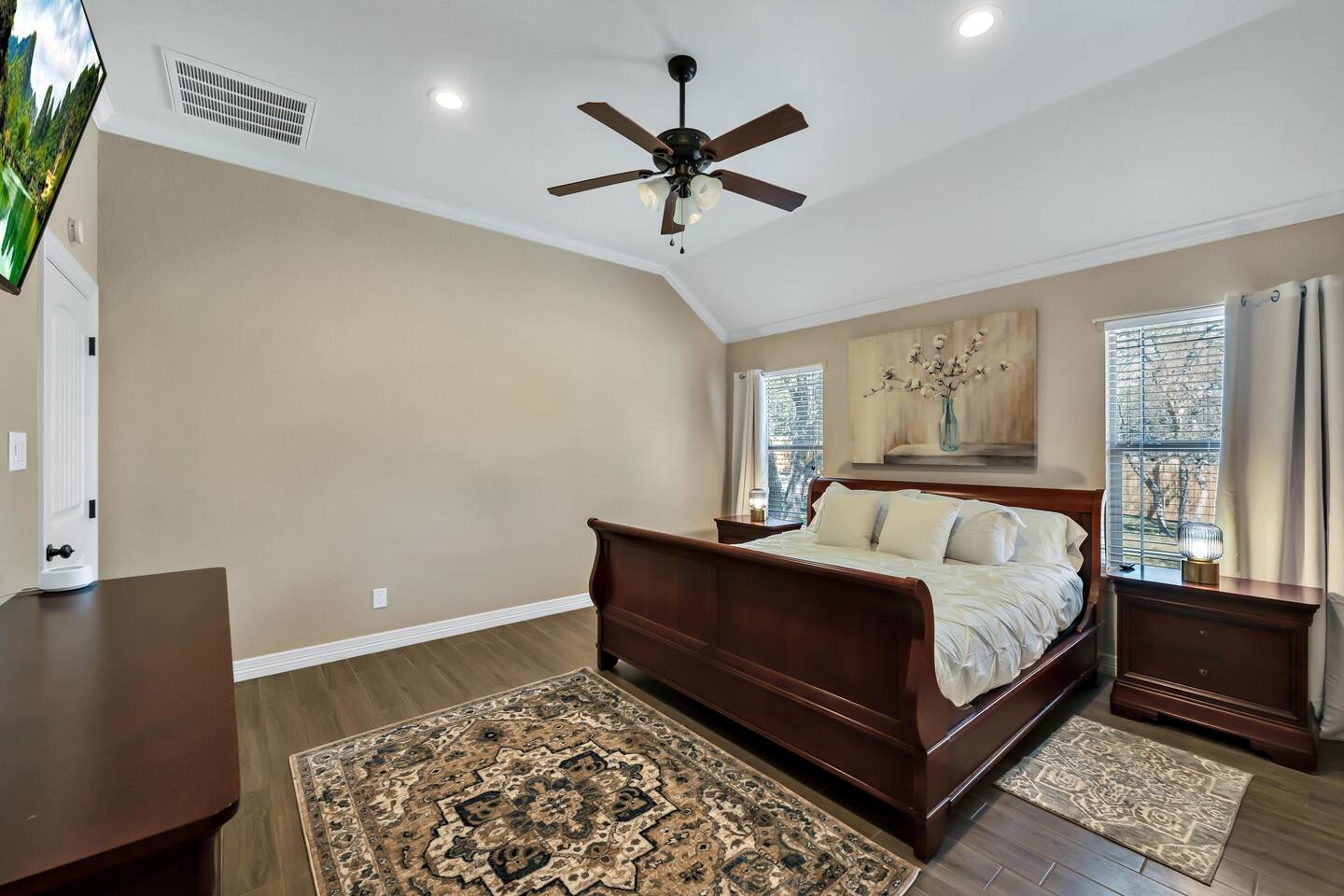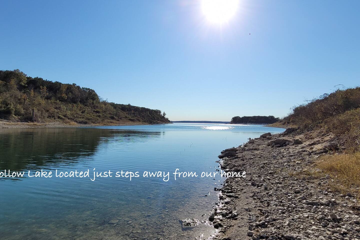 This spacious home consists of three bedrooms that provide coziness and comfort. The fully-stocked kitchen and dining room offer the ultimate convenience to cook and serve meals. And last but not least, the game room ensures all guests have the most epic of entertainment. We have cornhole, arcade basketball & foosball table as well as board games like Monopoly, What Do you Meme & Hedbanz. Guest can access the lake via a short walk from the back yard through a beautiful natural forest. The hill going down to the lake is steep and rocky so we advise using caution. We also advise not wearing flip flops on the trail. The swimming hole itself has a mostly rock bottom. Stillhouse Hollow Lake is located entirely within Bell County and is managed by The U.S. Army Corps of Engineers. The lake is meant to provide flood risk management, supply water and offer recreational opportunities to the Salado/Belton area, and to offer some of the best fishing, camping and boating in Central Texas.