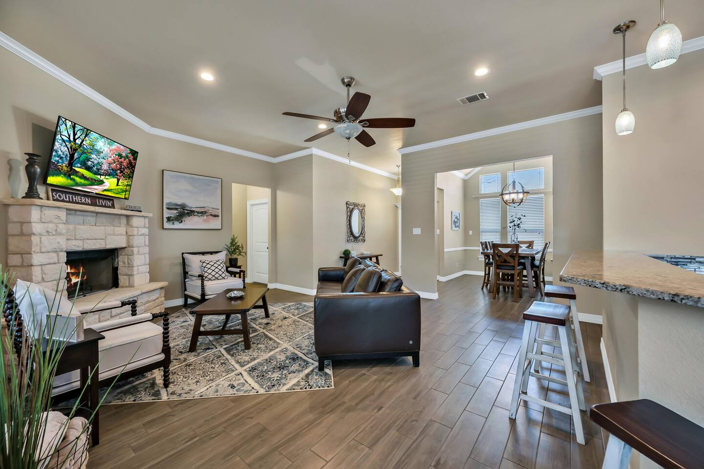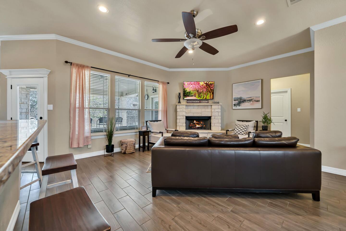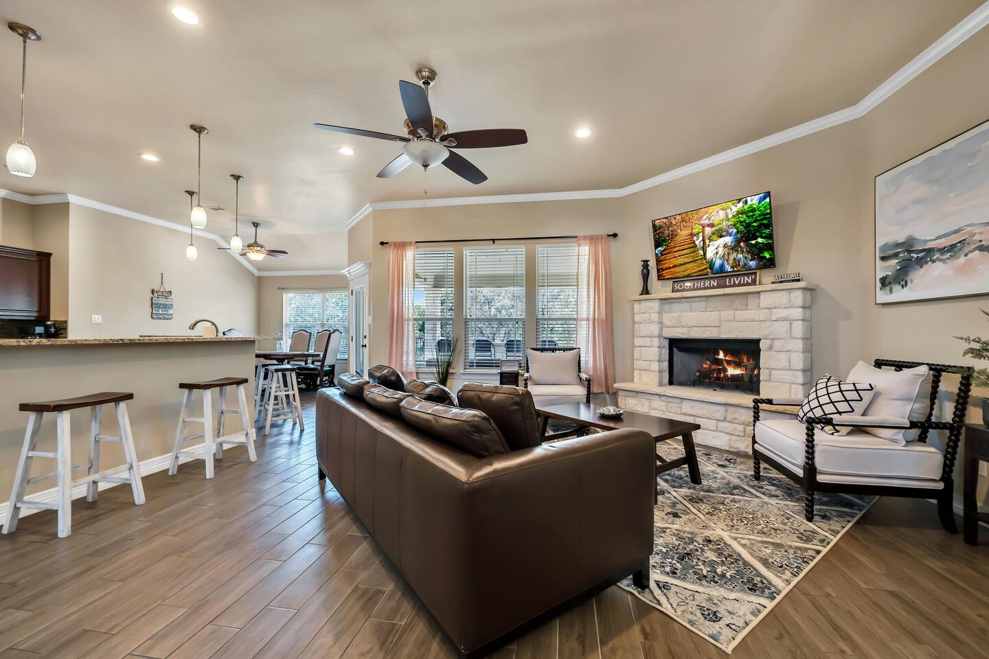 Bring the whole family to this great place with lots of room for fun. Located just steps away from Stillhouse Hollow Lake. Enjoy the sparkling pool, the cozy hot tub and the other gathering places for fun and leisure. Likewise, the inside of the home features an open concept and a garage converted into a game room, all perfect for entertaining. Every guest is sure to have great fun and make many memories. This is the best place to play hard and relax even harder!