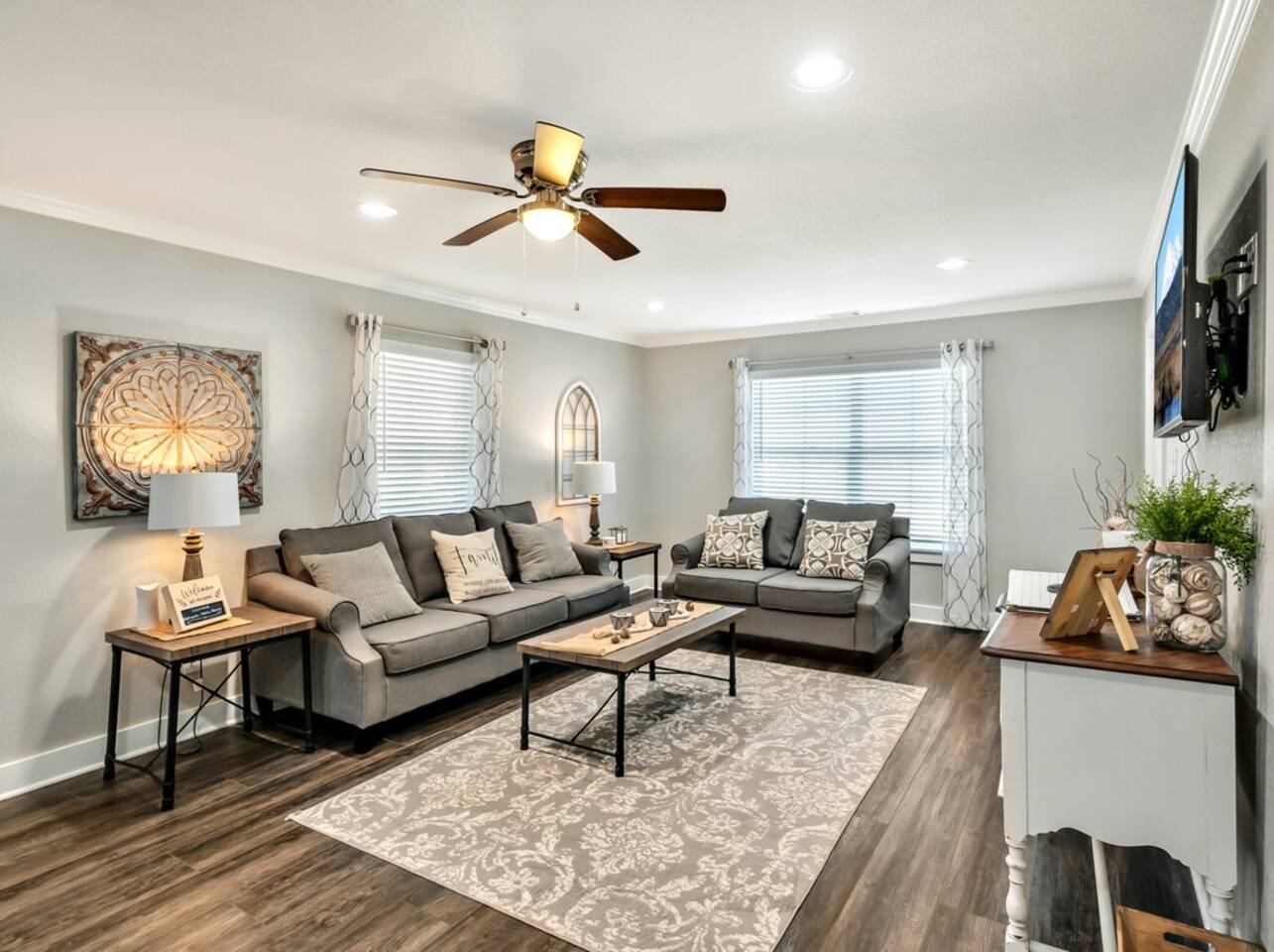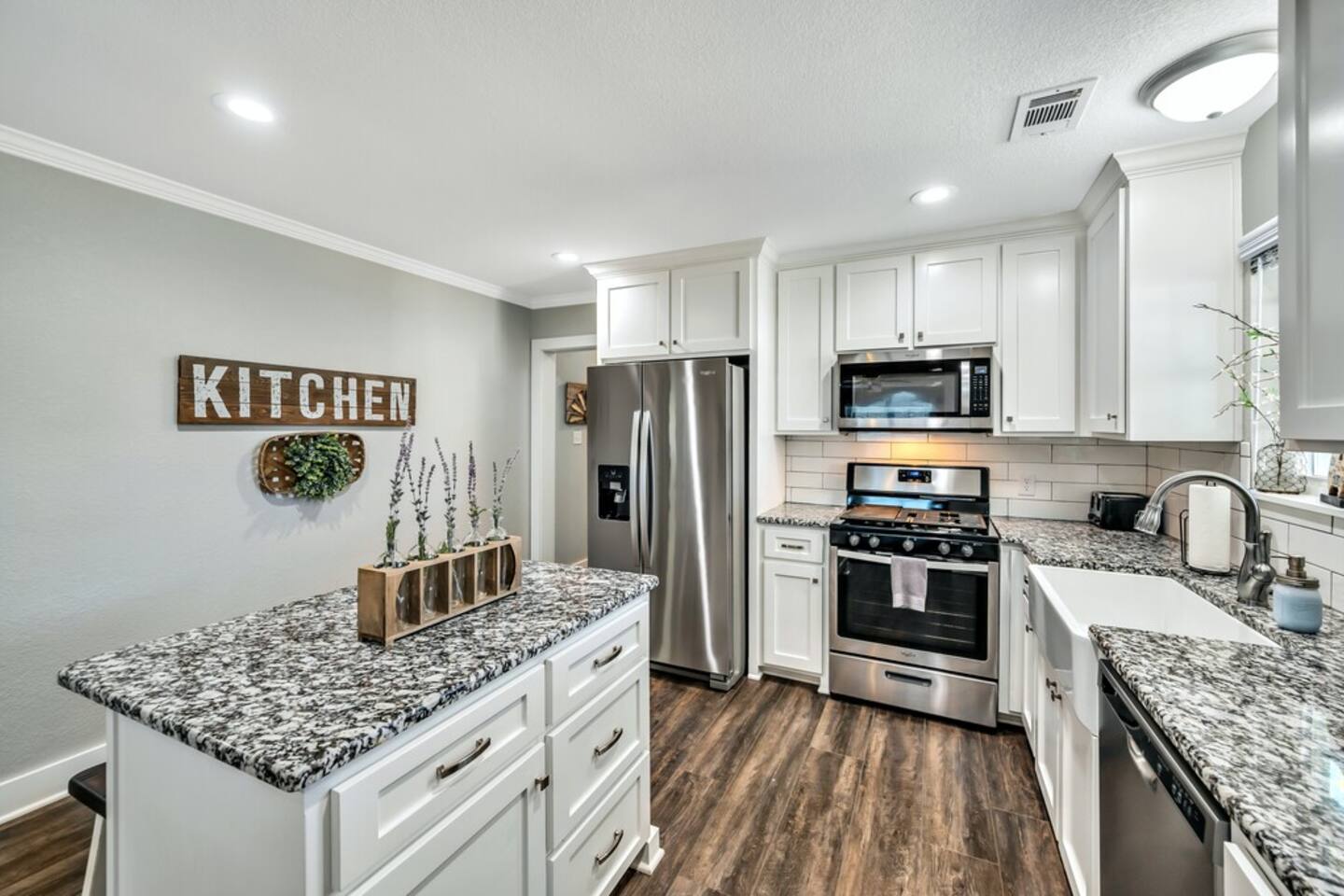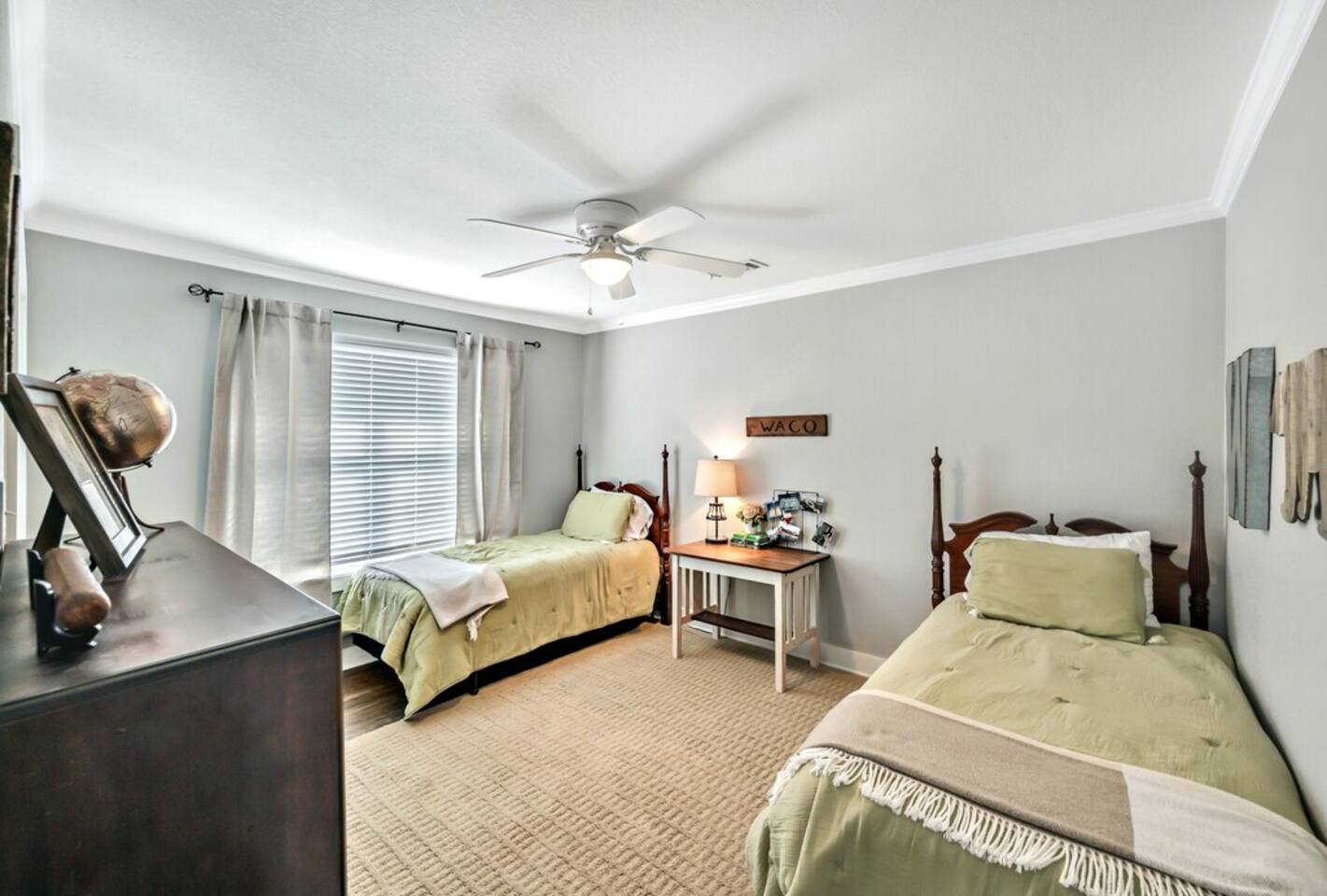 Upon arrival, you and your guests will enjoy deciding which bedroom fits you best. Will it be the master suite decorated with the popular buffalo check details or the cozy front bedroom complete with a sleigh bed and delicate details? Or maybe you will want to stay in the popular Waco-room with accents from our town’s past and present. We are located on the edge of Waco just a few minutes of downtown Waco and shopping. Other places of interest near our home are Highlander Ranch-McLennan Community College, Waco Mammoth National Monument, Waco Regional Airport, Lake Waco Golf Club, Lake Waco, and the Brazos & Bosque Rivers. We are also only 20 minutes to Waco Surf.