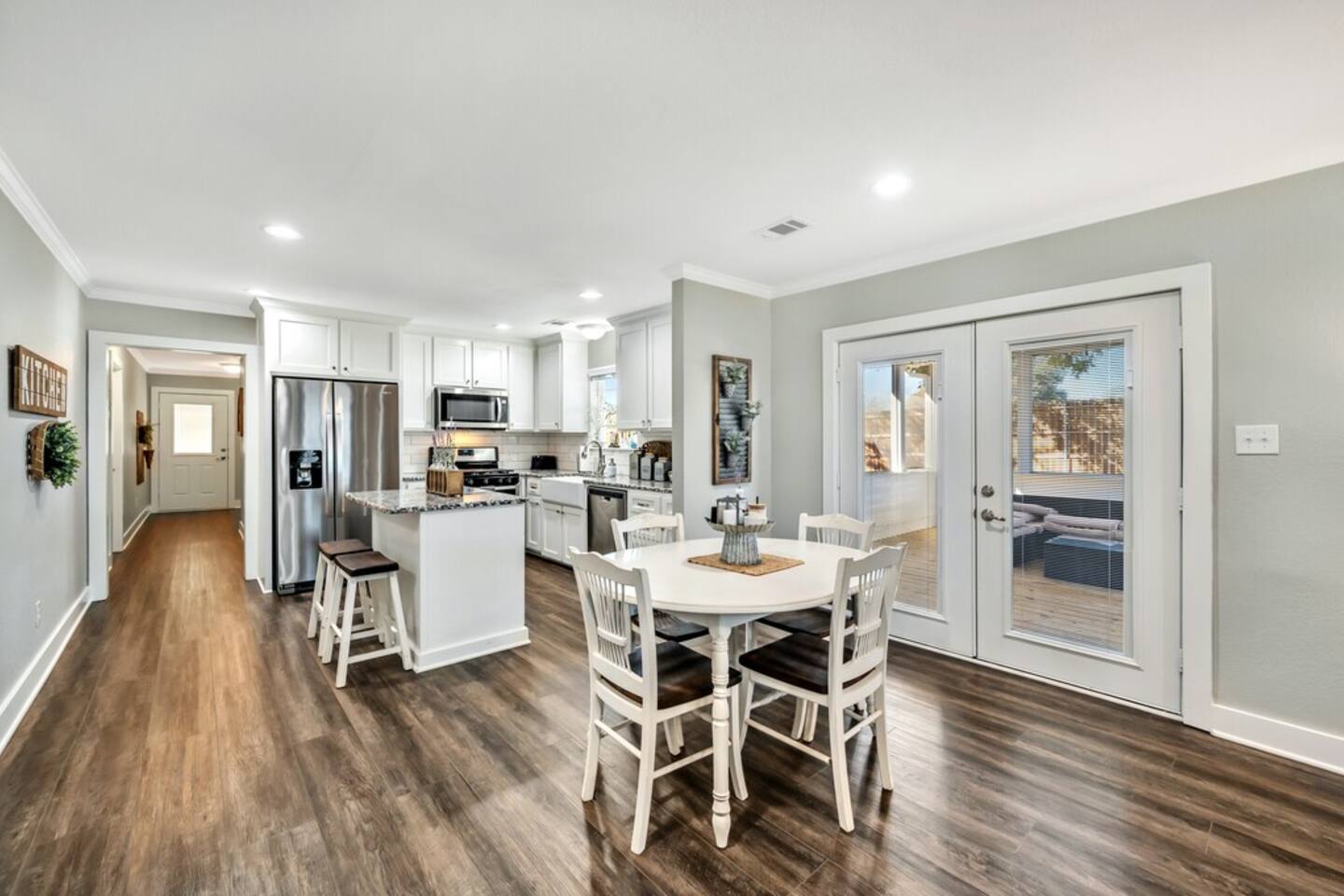 Enjoy a tranquil setting in this modern farmhouse for a family gathering, a celebration or some relaxation. Completely updated but still quaint and cute, this lodging is the perfect getaway. Complete with a screened-in porch, an upstairs game room for the kids (or big kids), a four person spa installed November 2020 and plenty of outdoor area, this place can and will accommodate.