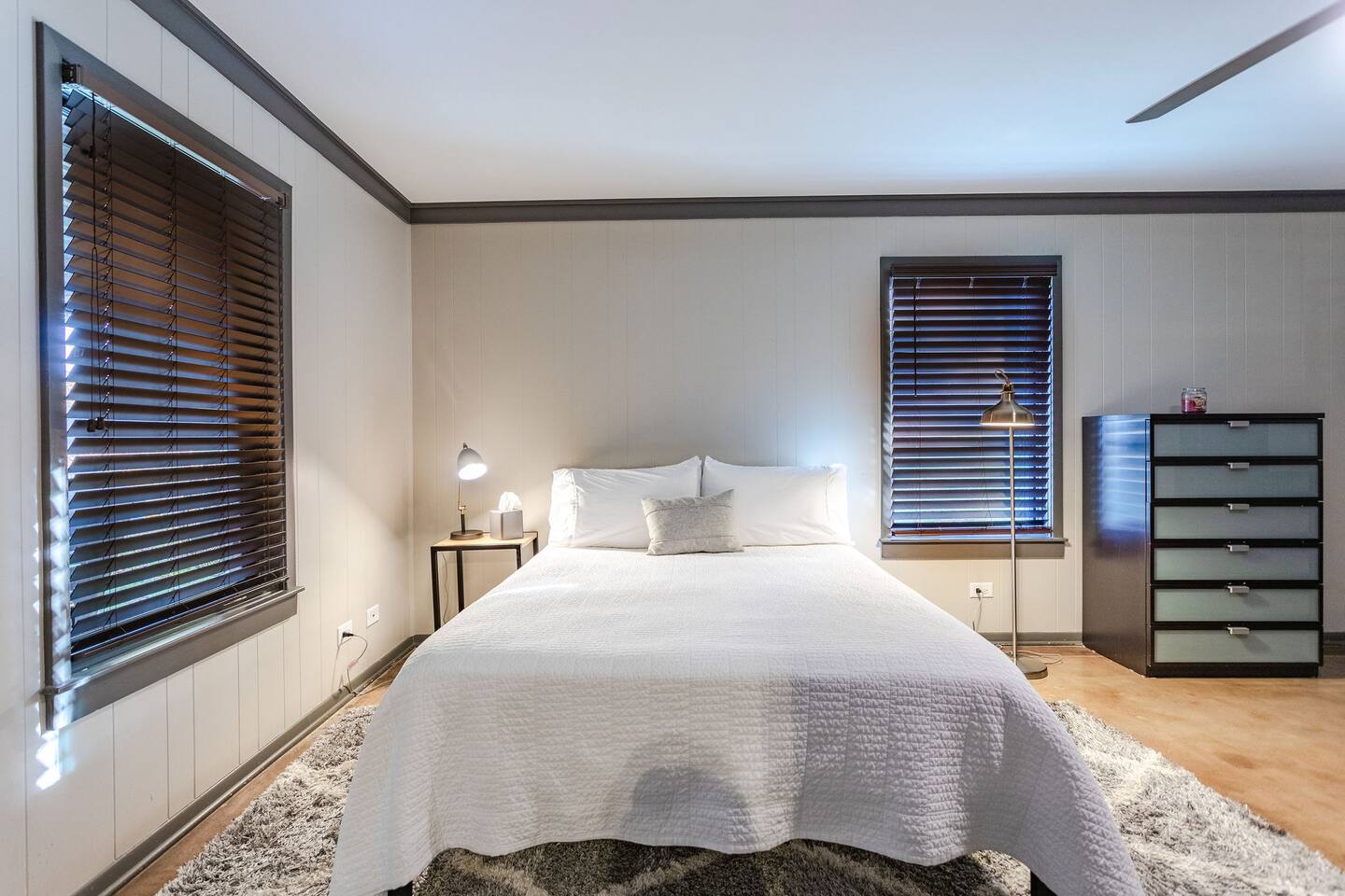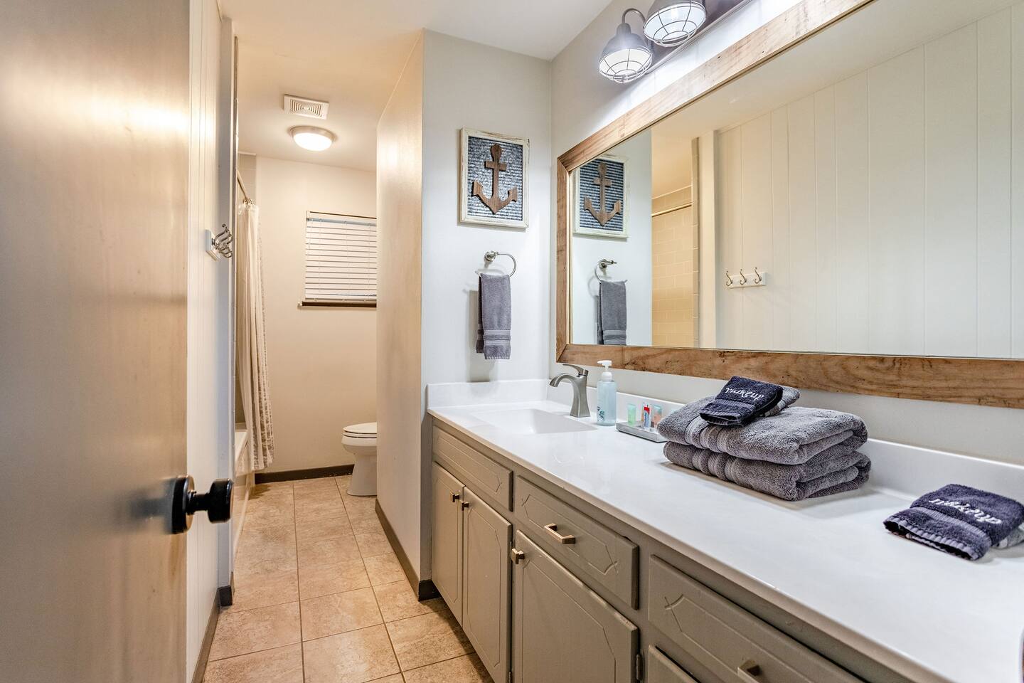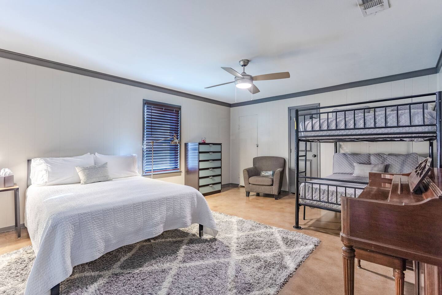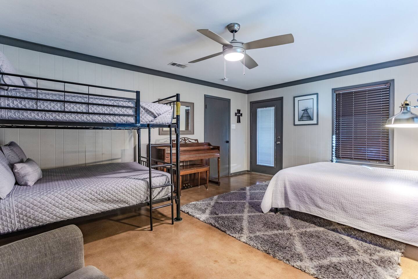 This house is located in Waco about 15 minutes away from Magnolia, 20 minutes away from Baylor, and 5 minutes away from a Target and an HEB grocery store. There are four bedrooms, three full bathrooms, a kitchen stocked with utensils, and plenty of towels and sheets to make you feel at home away from home. The bedroom with the queen bed and bunk beds is on the side of the house away from the master bedroom, two bedrooms, and all three bathrooms. Our house also has a covered front porch, a covered back porch, and a back yard with a sand volleyball court.