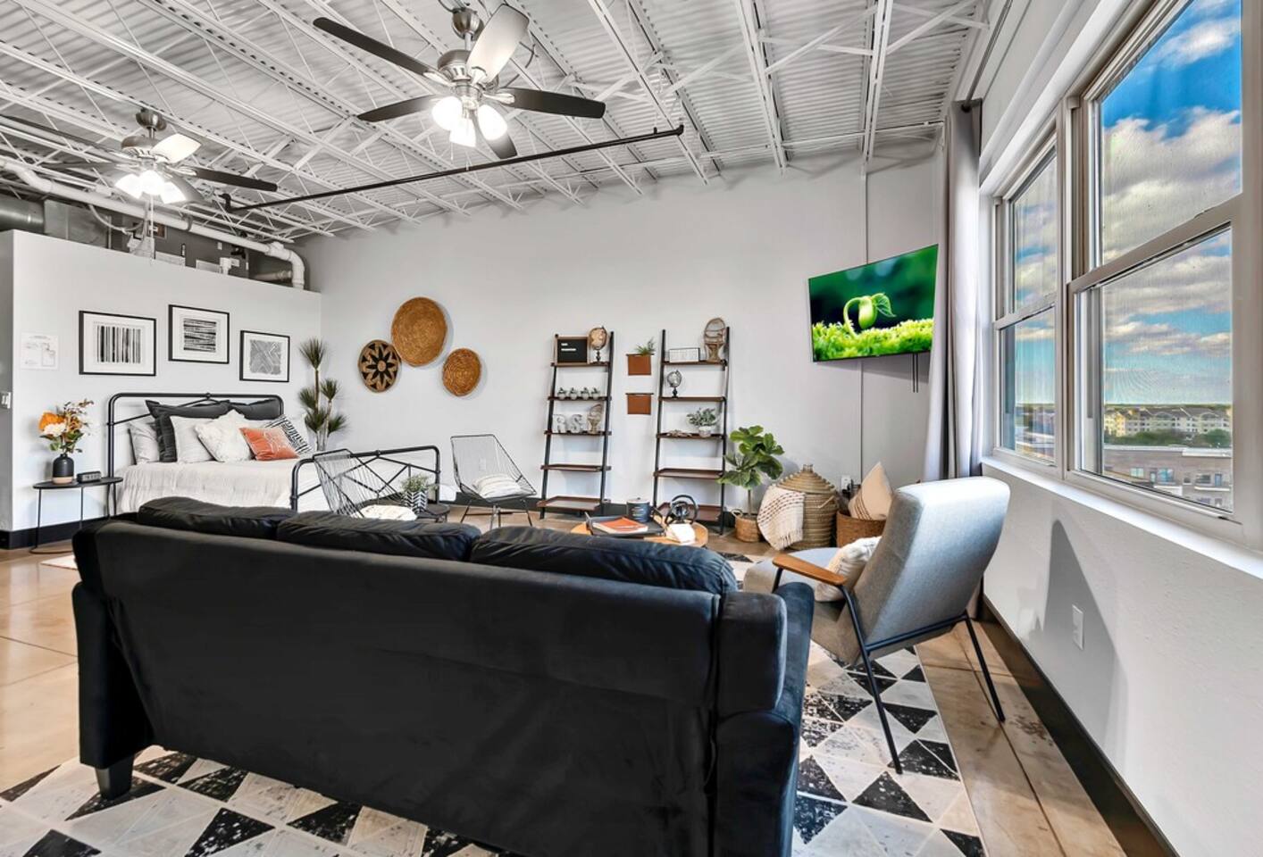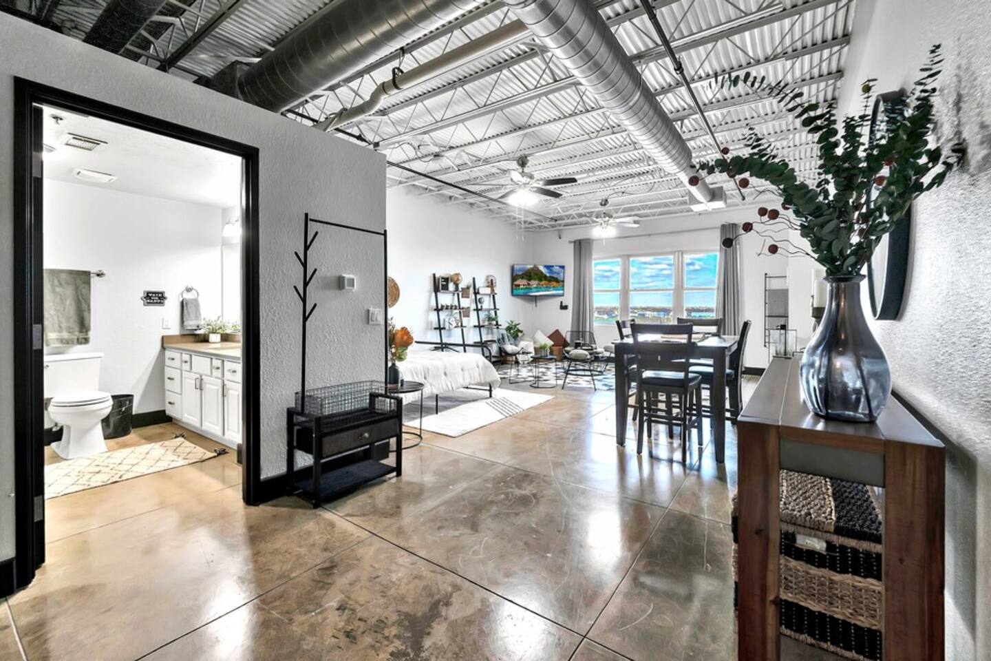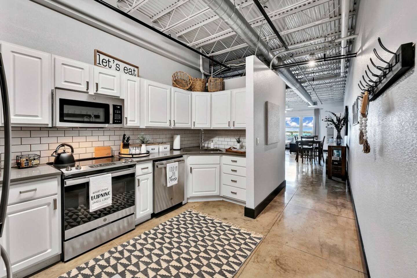 Boho Bungalow is located on the 5th floor of the Behrens Lofts in downtown Waco. Built in 1913 for the Behrens Drug Company, this fireproof concrete building survived the devastation of the 1953 Waco tornado & is now one of Waco's most luxury condo establishments. Truly unique in preserving all the industrial charm & characteristics of the past, this property flawlessly blends old factory details with modern amenities & design concepts. The condo is located in downtown Waco and within walking distance of The Silo District and some of the best restaurants & shopping Waco has to offer. If you are interested in activities around Baylor University like McLane Stadium, Texas Ranger Hall Of Fame & Museum, Texas Sports Hall Of Fame, you can take the shuttle that picks up just two blocks from the building. If you are bringing children, we highly recommend the Mayborn Museum or the Cameron Park Zoo. Our condo has most everything you would have at your own home. A fully stocked kitchen, coffee makers, new appliances, comfortable beds and a cozy living space. Long term renters welcome. Occupancy Certificate License: STR000836-10-2021