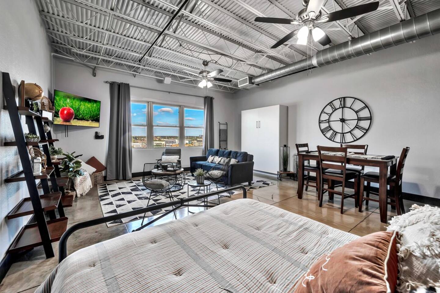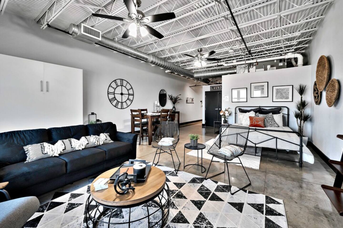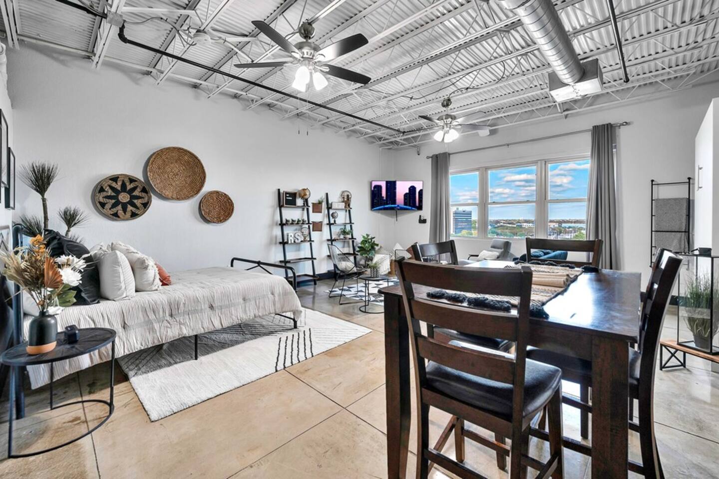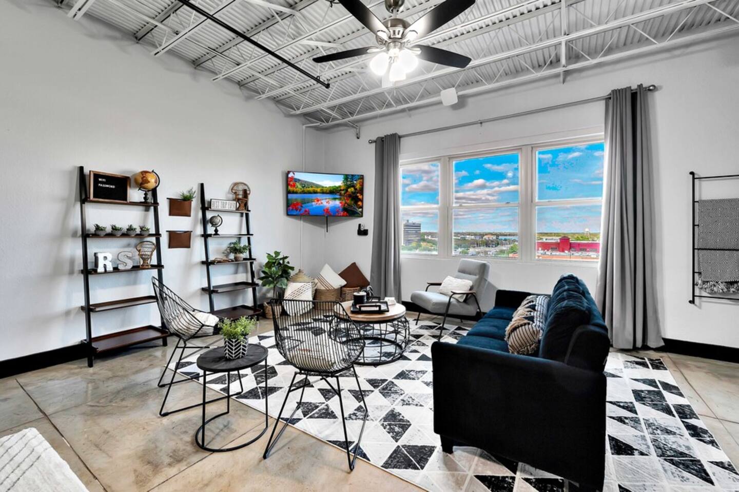 Boho Bungalow is located on the 5th floor of the Behrens Lofts in downtown Waco. Built in 1913 for the Behrens Drug Company, this fireproof concrete building survived the devastation of the 1953 Waco tornado & is now one of Waco's most luxury condo establishments. Truly unique in preserving all the industrial charm & characteristics of the past, this property flawlessly blends old factory details with modern amenities & design concepts. The condo is located in downtown Waco and within walking distance of The Silo District and some of the best restaurants & shopping Waco has to offer. If you are interested in activities around Baylor University like McLane Stadium, Texas Ranger Hall Of Fame & Museum, Texas Sports Hall Of Fame, you can take the shuttle that picks up just two blocks from the building. If you are bringing children, we highly recommend the Mayborn Museum or the Cameron Park Zoo. Our condo has most everything you would have at your own home. A fully stocked kitchen, coffee makers, new appliances, comfortable beds and a cozy living space. Long term renters welcome. Occupancy Certificate License: STR000836-10-2021
