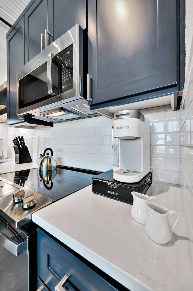 The Coffee Machine is a Keurig & we do provide pods, sweeteners, and creamer for your stay. Windows on 5th floor offer exceptional views towards The Brazos River area, Baylor University, downtown Waco and McLane Stadium. The living room and bedroom have a Smart TV's with Hulu and streaming apps. Families - we do have a pack 'n play. There are games and playing cards inside the silver coffee table in the living room. This is a downtown location. Occasionally you will hear the train two blocks away and other noises associated with a downtown area. Must be 21 or older to book.