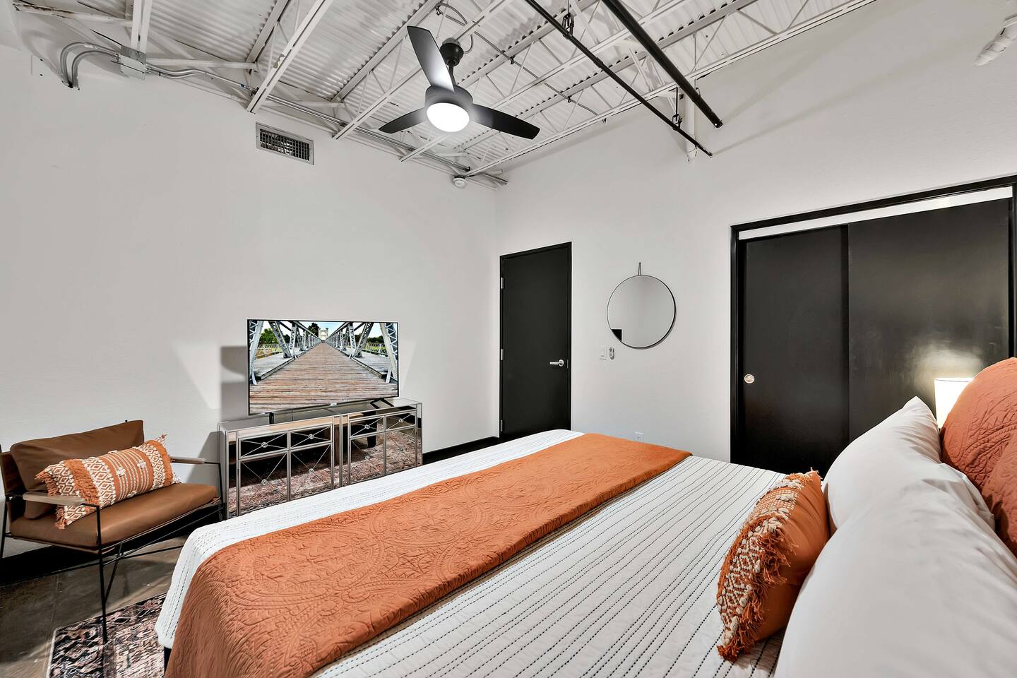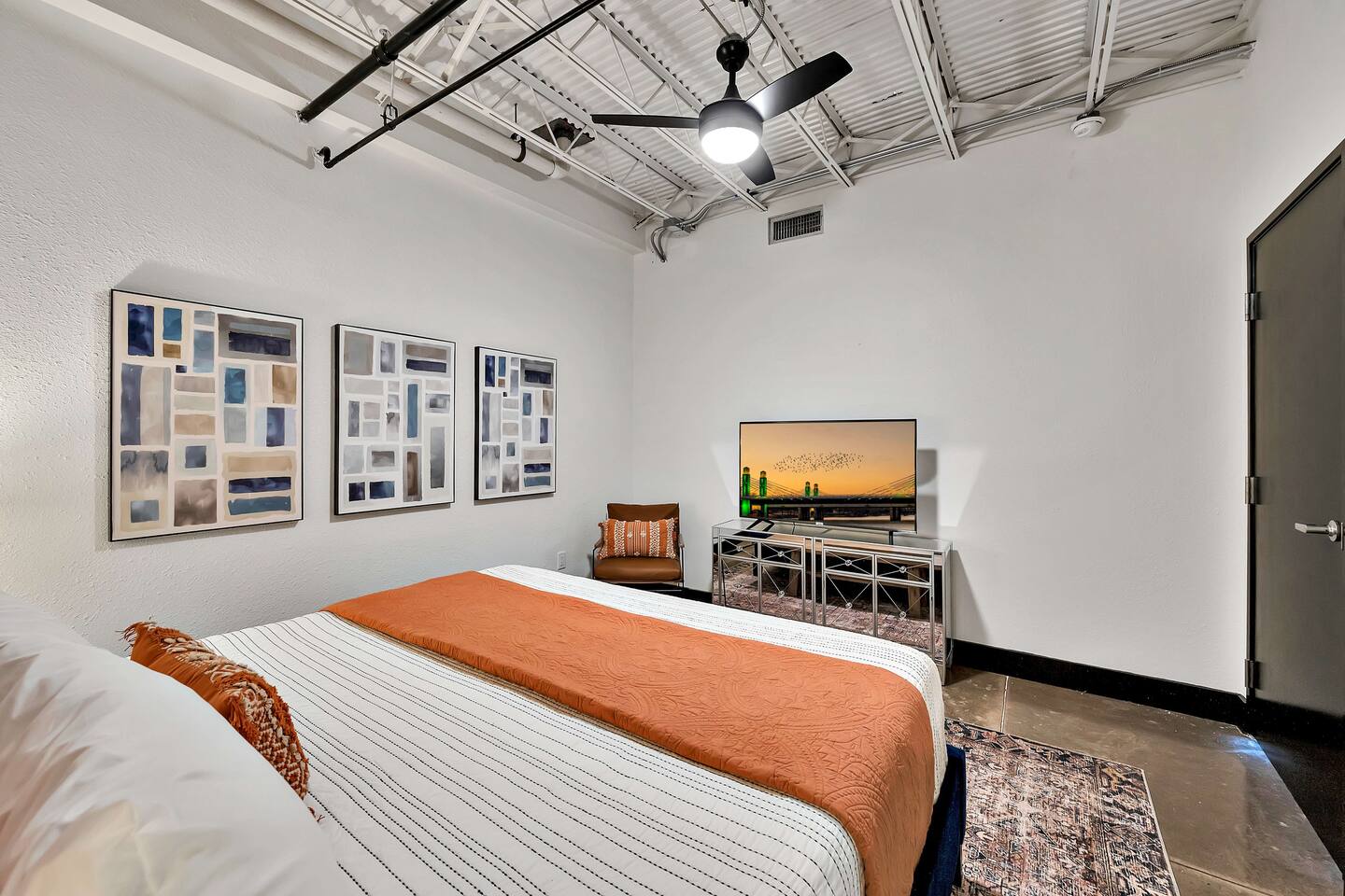 Welcome to Silocation, a creatively designed and newly refreshed condo located on the fifth floor of one of Waco’s most iconic downtown buildings. Just steps from the Magnolia Silos, this vibrant one-bedroom, one-bath retreat puts you within walking distance of Waco’s best local spots, including Fabled Bookstore, Spice Village, and the charm of Austin Avenue. Designed for comfort and inspiration, the interior features the signature Waco style that made the city famous, with layers of texture, unique decor, and just the right mix of color and calm. This condo has been fully updated from top to bottom, including fresh paint, new furnishings, and modern touches throughout. It feels brand new while keeping the warm, lived-in character guests love. The space includes a king bedroom, spacious bathroom, and a queen-size Murphy bed in the living area. The open kitchen and living room provide a welcoming space to wind down with a glass of wine and enjoy sweeping downtown views. With high-speed Wi-Fi, a fully stocked kitchen, and free parking, you’ll have everything you need for a comfortable stay. Whether you're visiting Waco for a weekend getaway, a Silos adventure, or a creative retreat, Silocation is a cozy and stylish home base right in the heart of the action. Occupancy Certificate License: STR000152-01-2022