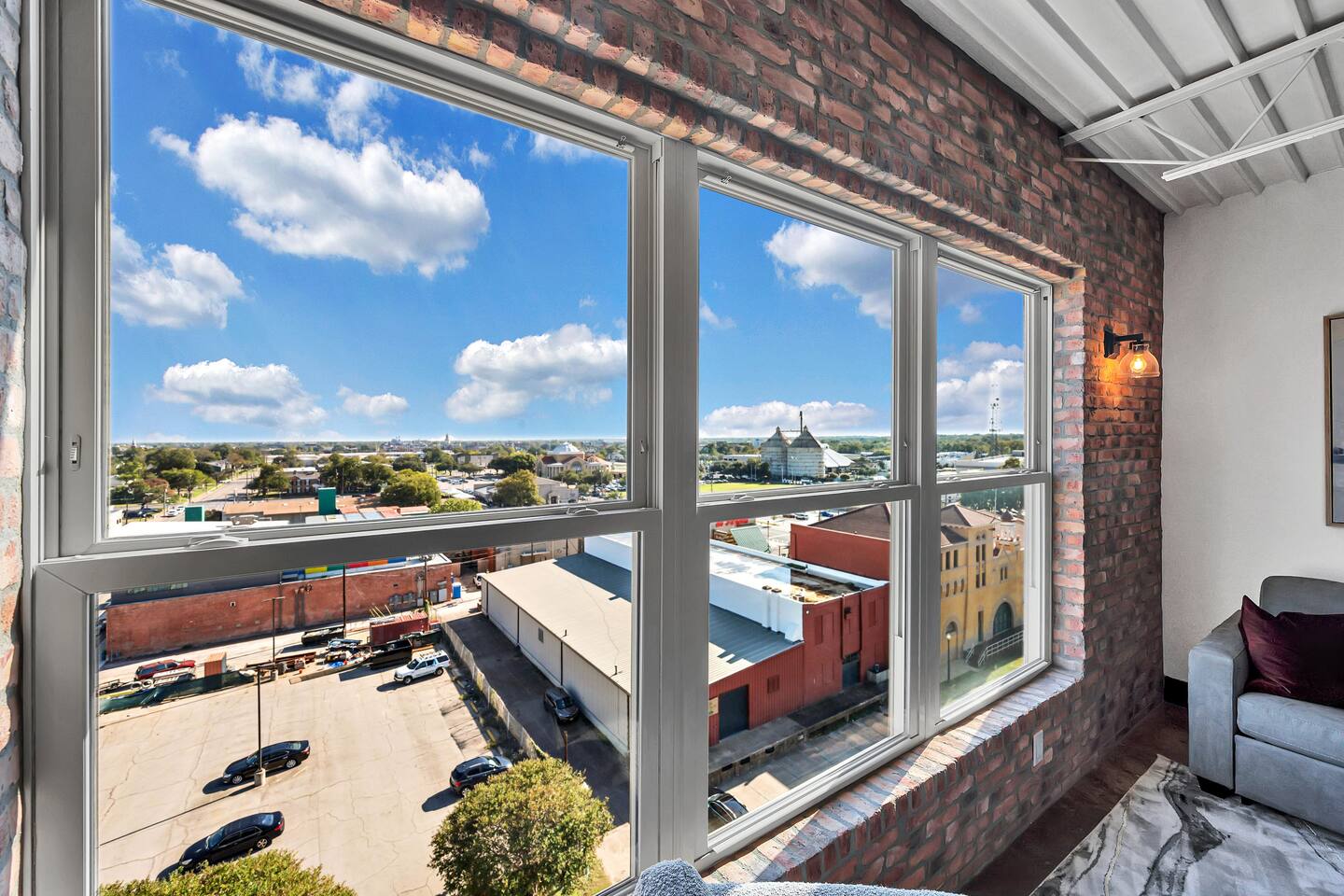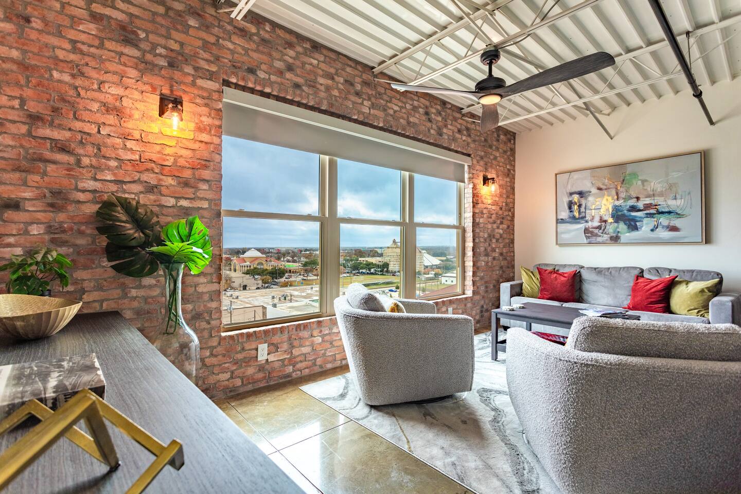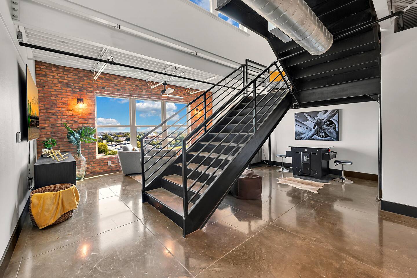 Step into an urban industrial retreat at this stunning lofted suite, located on the top floor of the historic Behrens Building. This two-story condo is the perfect blend of modern comfort and industrial charm, offering unbeatable views of The Silos, Baylor University, and McLane Stadium. Featuring sleek finishes, exposed architectural details, and automated blinds for a seamless touch, this space is designed to elevate your Waco experience. This lofted suite blends a chic industrial vibe with luxurious amenities, offering a truly unique experience. The spacious living area invites you to relax in style with comfortable seating, an 85” TV, and a classic arcade machine (no coins needed!). The fully equipped kitchen is perfect for culinary adventures, featuring modern appliances, ample counter space, and complimentary coffee and snacks. Upstairs, the lofted sleeping area provides a cozy retreat with a plush king-size bed, as well as premium sleeper options like an IKEA Queen and a Palliser Cloud Z Queen for added flexibility. Thoughtful touches, including automated blinds, soft bedding, and breathtaking views, make this space the perfect haven for your Waco getaway. Prime Location Immerse yourself in Waco’s vibrant downtown, with top attractions just steps away: Magnolia Silos: 3 blocks Dr Pepper Museum: Next door Waco Suspension Bridge: 5 blocks Baylor University: 1.5 miles McLane Stadium: 1.6 miles From the urban industrial vibe to its unbeatable location, this lofted suite is your ideal home base for exploring Waco. Whether you’re here for a weekend getaway, a Baylor game, or a Magnolia escape, this condo offers style, comfort, and convenience all in one. Book your stay today and experience Waco like never before! STR001117-10-2022