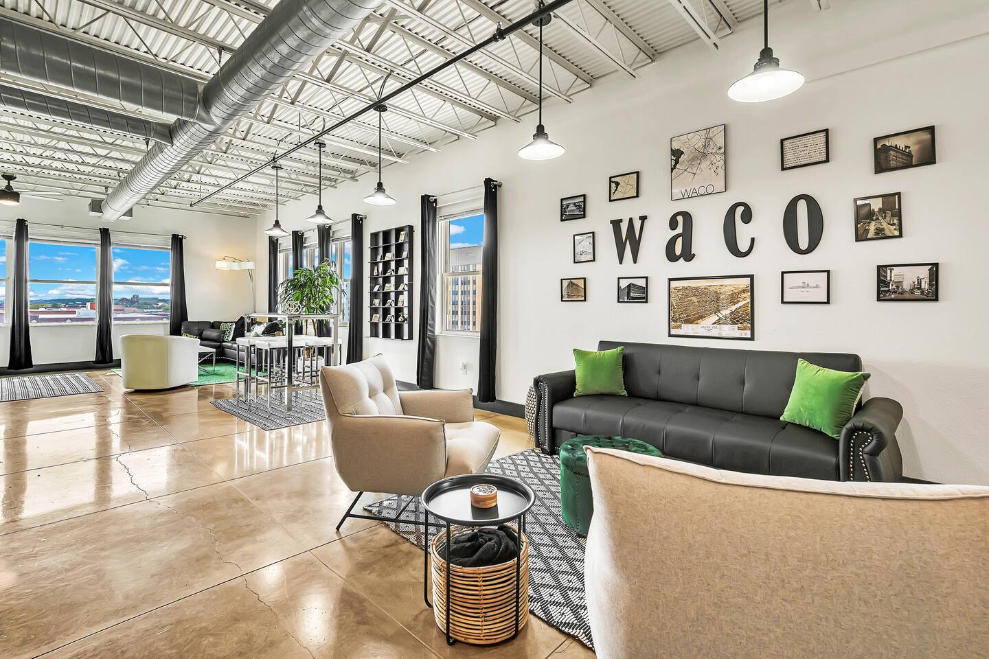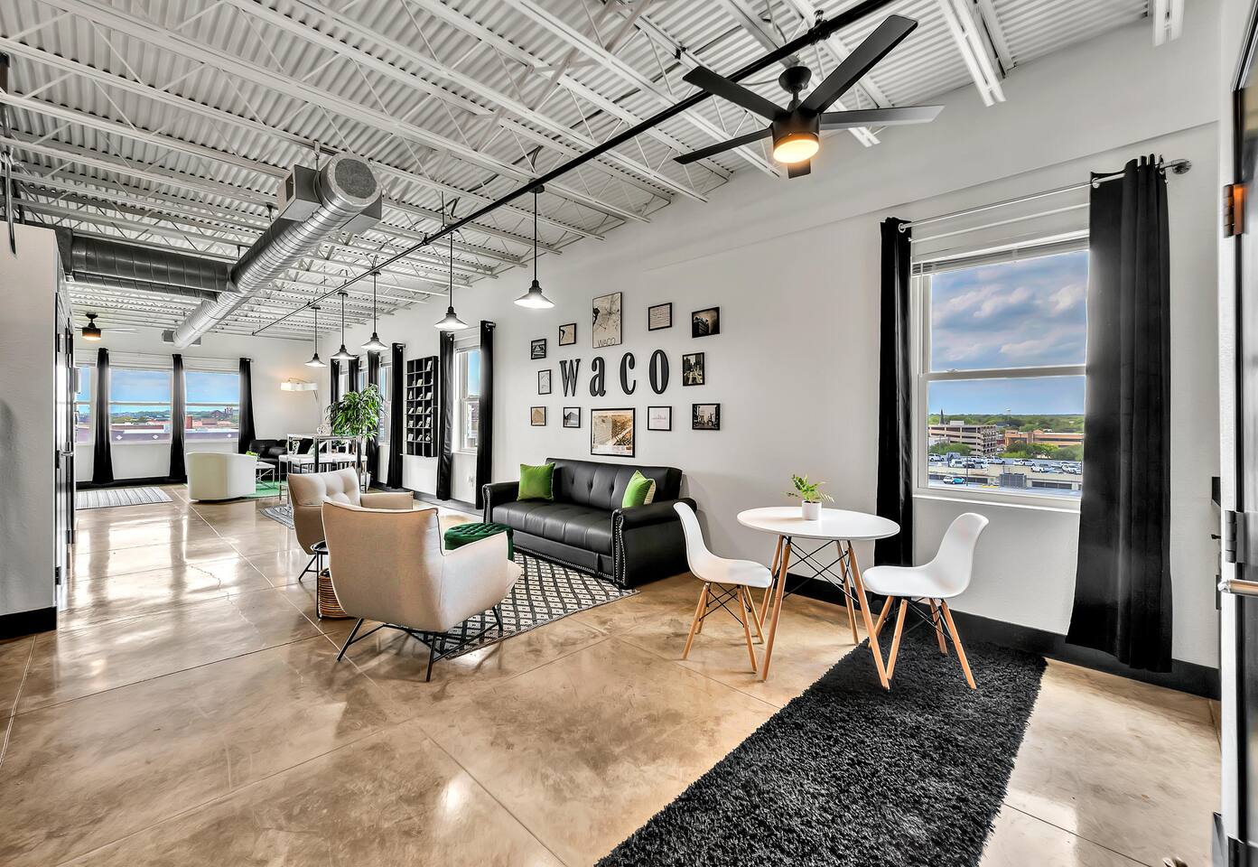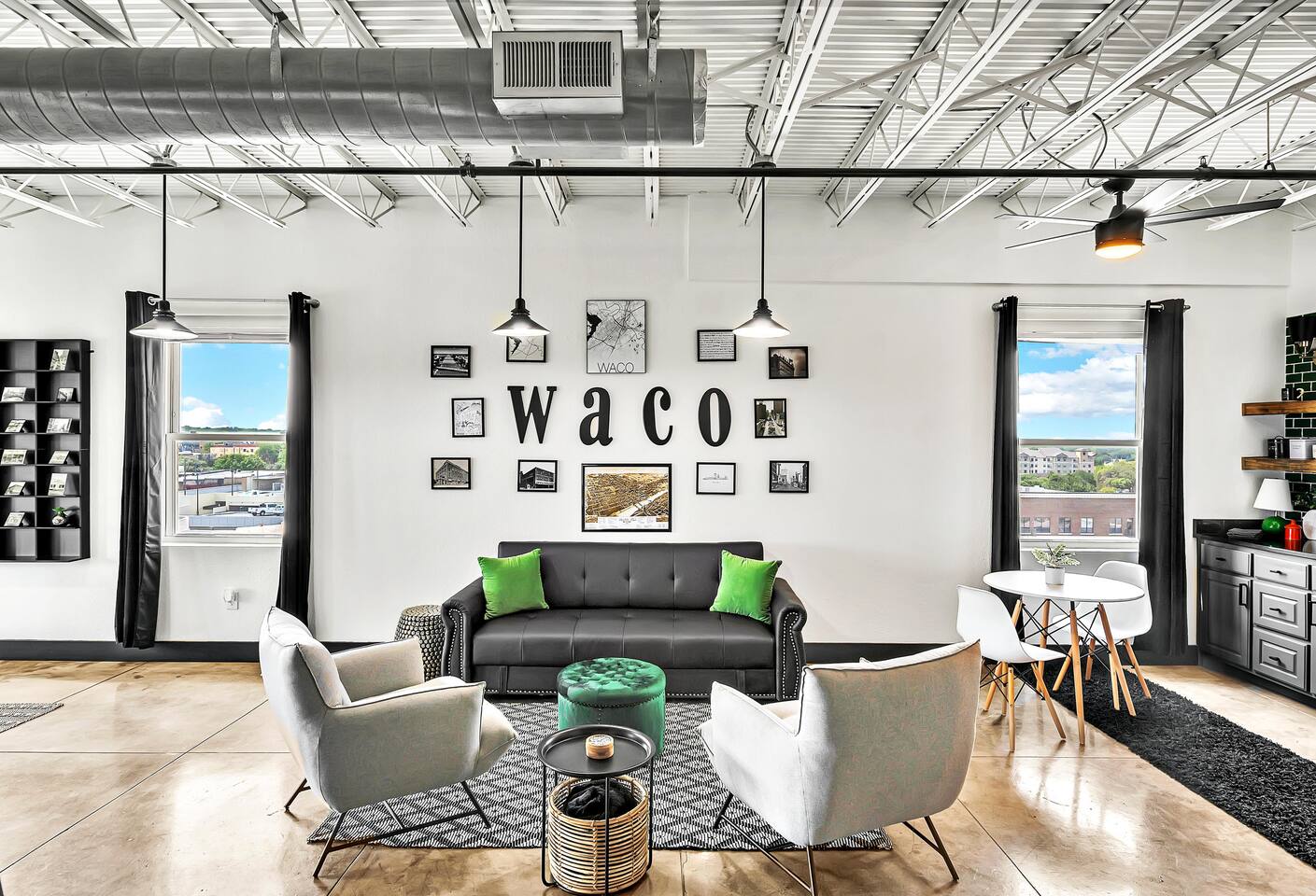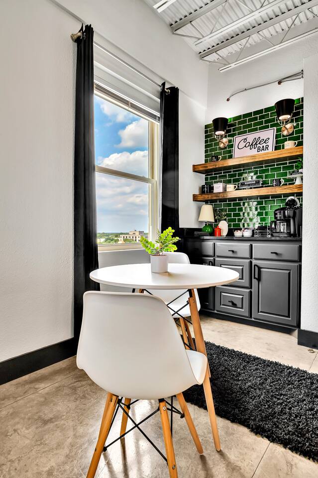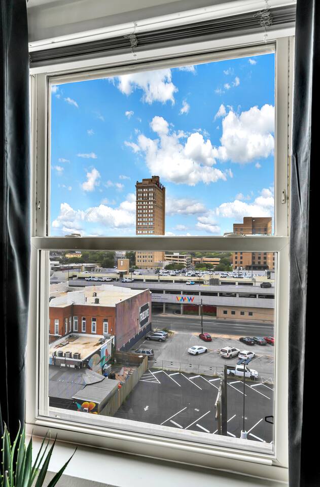 Experience a nostalgic nod to Old Waco at Silo Studio, a beautifully updated loft in the historic Behrens Building—just steps from Magnolia, Baylor, and the heart of downtown. Thoughtfully designed with vintage-inspired touches and modern furnishings, this unique space blends timeless style with everyday comfort. Large, panoramic windows flood the space with natural light and showcase sweeping views of downtown Waco, making it one of the loft’s standout features. Inside, you’ll find an open floor plan, dining space for four, a cozy breakfast nook (or workspace), and plenty of comfortable seating for relaxing and reconnecting. Additional highlights include a luxurious bathroom, free designated parking, and all the amenities you need for a comfortable stay. With its industrial charm and unbeatable location, Silo Studio is the perfect spot to experience Waco in style—whether you’re here for a quick getaway or a longer stay. STR000847-08-2022