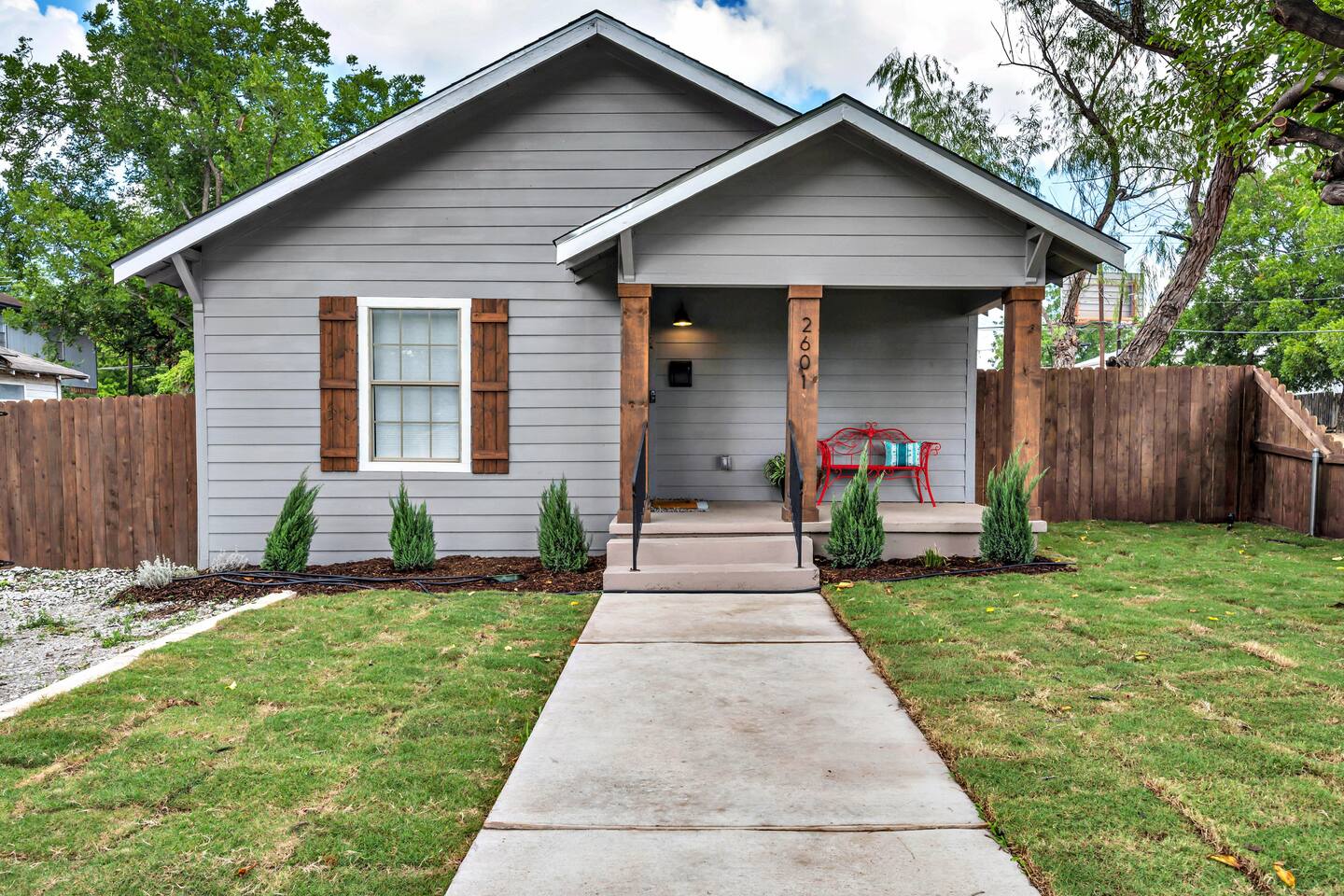 We have a security camera at the front door to monitor packages being delivered. We are located next to a popular one-way street, so to ensure you have a relaxing experience we've installed a "Simply Private" six foot fence around the property and even offer "Simply Soothing" white noise machines in each bedroom just in case you need them. You'll love the "Simple" aspects here and our September 2022 backyard is part of that - very simple. Once you've soaked in the charm of Simply Put Waco, we invite you to come back later in the Fall once we've spruced up the yard with outdoor living spaces and other fun amenities! Must be 21 or older to book.
