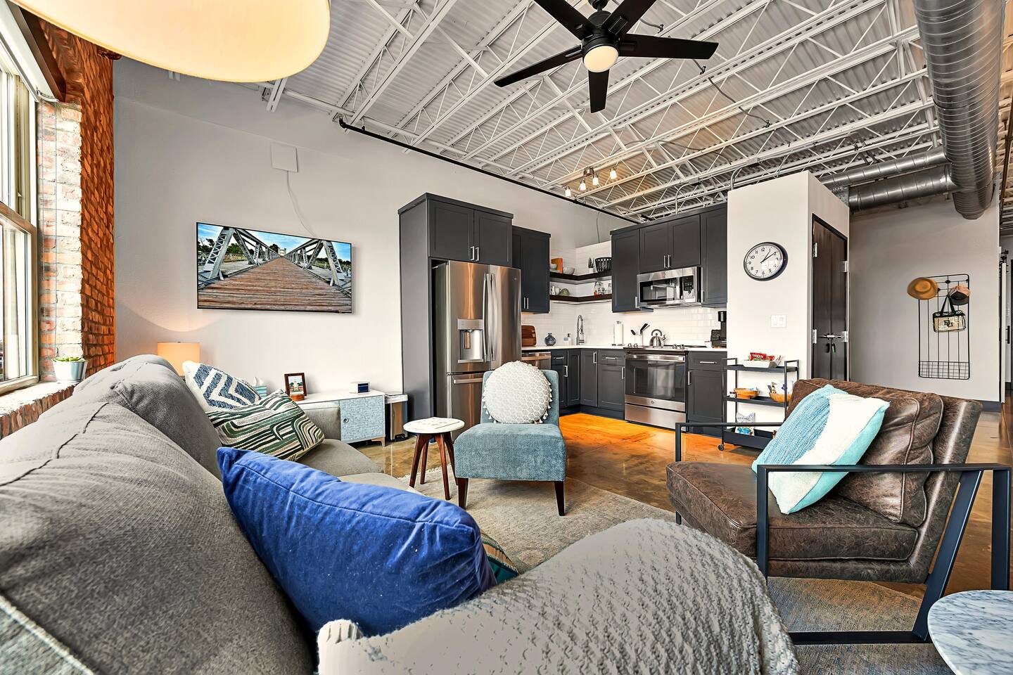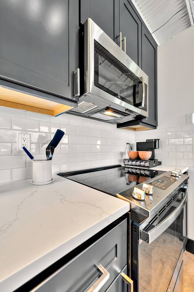 A ramp at the back of the building makes for easy access and there are two elevators inside the building. The Coffee Machine is a Keurig Duo & we do provide pods, sweeteners, and creamer for your stay. The living and bedroom have Smart TV's with streaming apps. Families - we do have a pack 'n play. We have a Steamfast for clothes instead of iron. This is a downtown location. Occasionally you will hear the train two blocks away and other noises associated with a downtown area. Must be 21 or older to book.