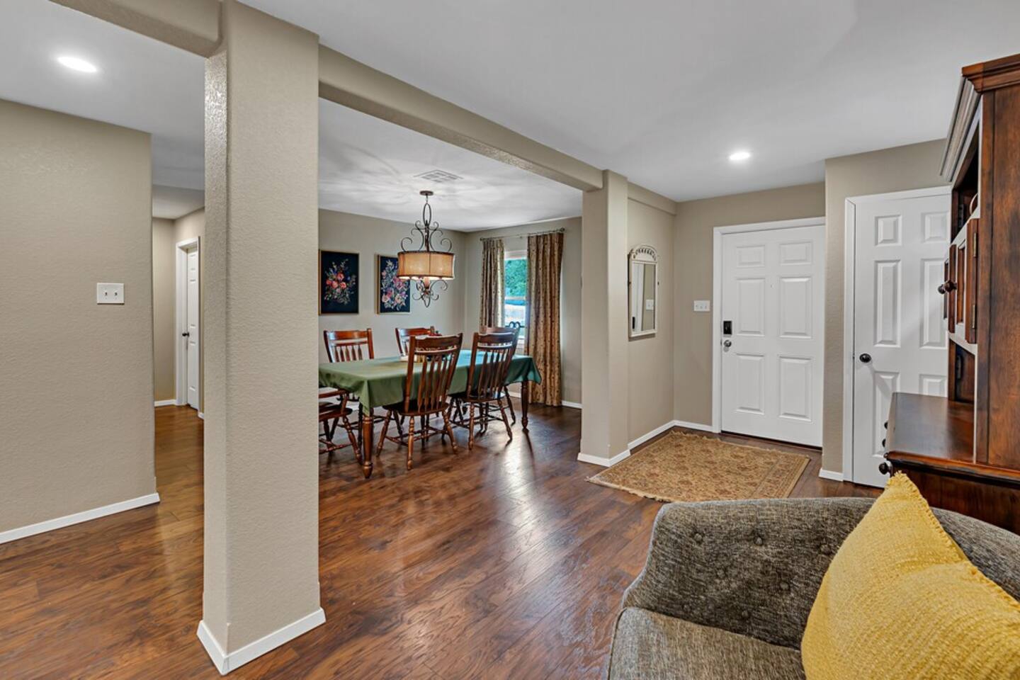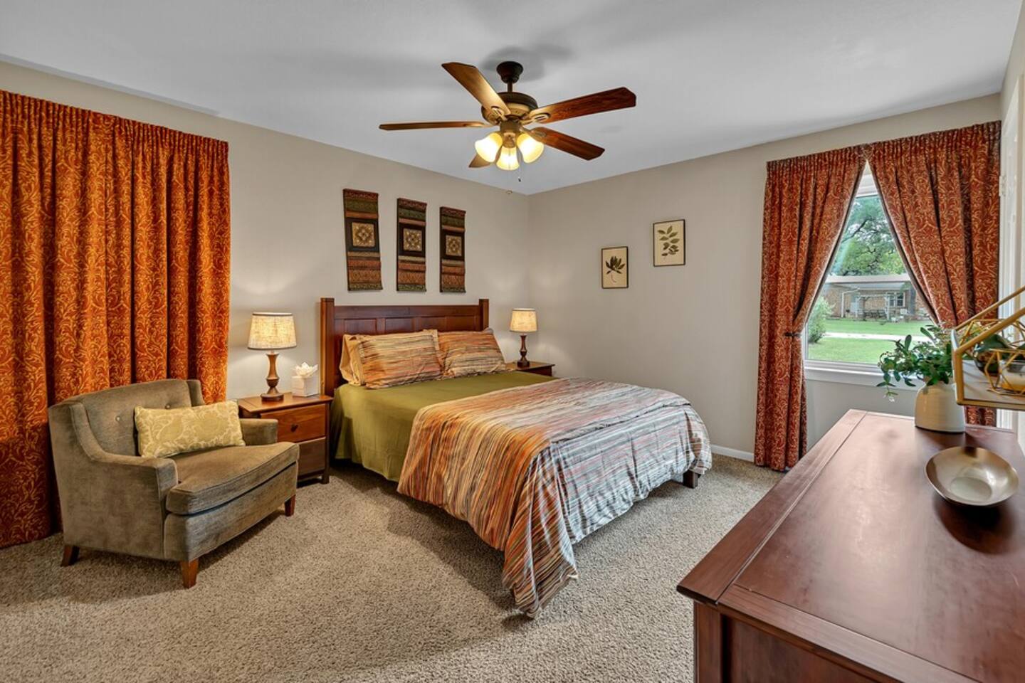 What you'll love: Open-concept living room with Smart TV and streaming access with individual guest log in Fully stocked kitchen with modern appliances and dining area Washer & dryer, central heat/air, and fast Wi-Fi Sleeping for 8 with 2 queens, day bed with trundle, and a set of twin bunk beds Private covered parking Enjoy your own private backyard with tree swing, cornhole, climbing structure, and firepit Plenty of room to relax, play, and catch stunning Texas sunsets Privacy & Flexibility: This is a completely private home with its own entrance, parking, and dedicated spaces. While the property also features a detached guesthouse (Sunset Cottage), there are no shared indoor areas and a shop building separates the two for maximum privacy. Need more space? You can book the entire Sunset Corner Villa property by reserving the Main House and Sunset Cottage together at airbnb.com/h/sunsetcornervilla —perfect for larger groups or multi-family stays. Please Note: If only Sunset Corner (main house) is rented, another party may be occupying the guesthouse during your stay. However, thanks to the layout and structure of the property, your privacy is fully respected and maintained.