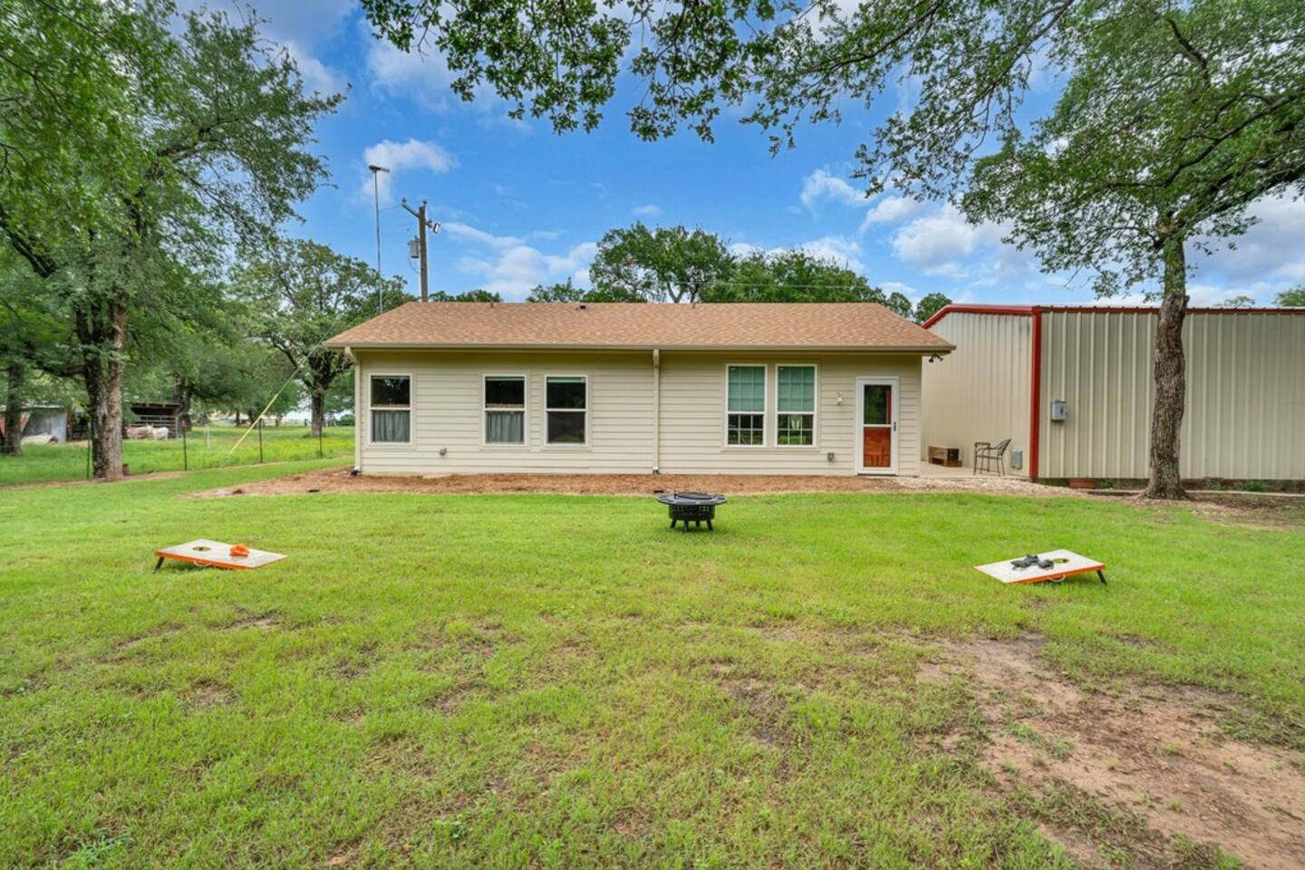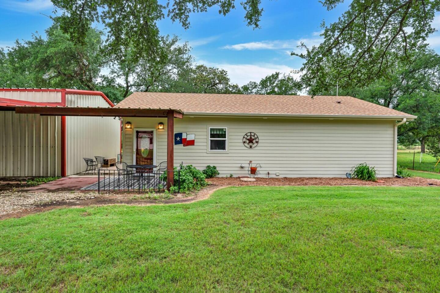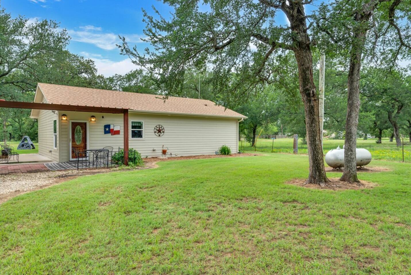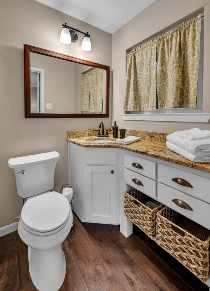 Brand New Listing! The Main House 3 bedrooms | 2 bathrooms | Sleeps 8 Spacious living area with a Smart TV and guest-friendly streaming logins Fully stocked kitchen for meals at home Washer/dryer, WiFi, and family-friendly touches throughout Layout: Bedroom 1: Queen size bed Bedroom 2: Queen size bed & twin size bunk beds Bedroom 3: Daybed with trundle (2 twins) The Second Home 2 bedrooms | 1 bathroom | Sleeps 4 Cozy layout perfect for kids or couples Private entry, kitchen, and bathroom Ideal for extended families or friends traveling together Layout: Bedroom 1: Queen size bed Bedroom 2: Queen size bed The Backyard — A Guest Favorite Gorgeous Texas sunsets Tree swing, cornhole, a climbing structure for kids, and firepit Open space for games, relaxing, or sipping wine under the stars Perfect setting for gathering, grilling, or making s’mores around the fire The donkeys are owned by the neighbors; however, can be seen hanging around the fence line often. LISTING: This listing is for BOTH homes. Price includes both homes; however, each home can be rented separately if preferred using the listing links below. Main House: airbnb.com/h/sunsetcornerwaco Guest House: airbnb.com/h/sunsetcottagewaco Whether you're here for a family vacation, girls’ getaway, or a Waco weekend adventure, Sunset Corner offers the space, comfort, and fun you’re looking for.