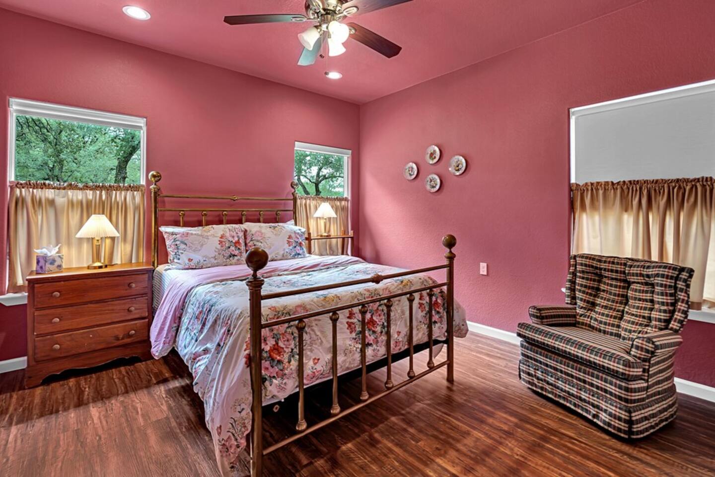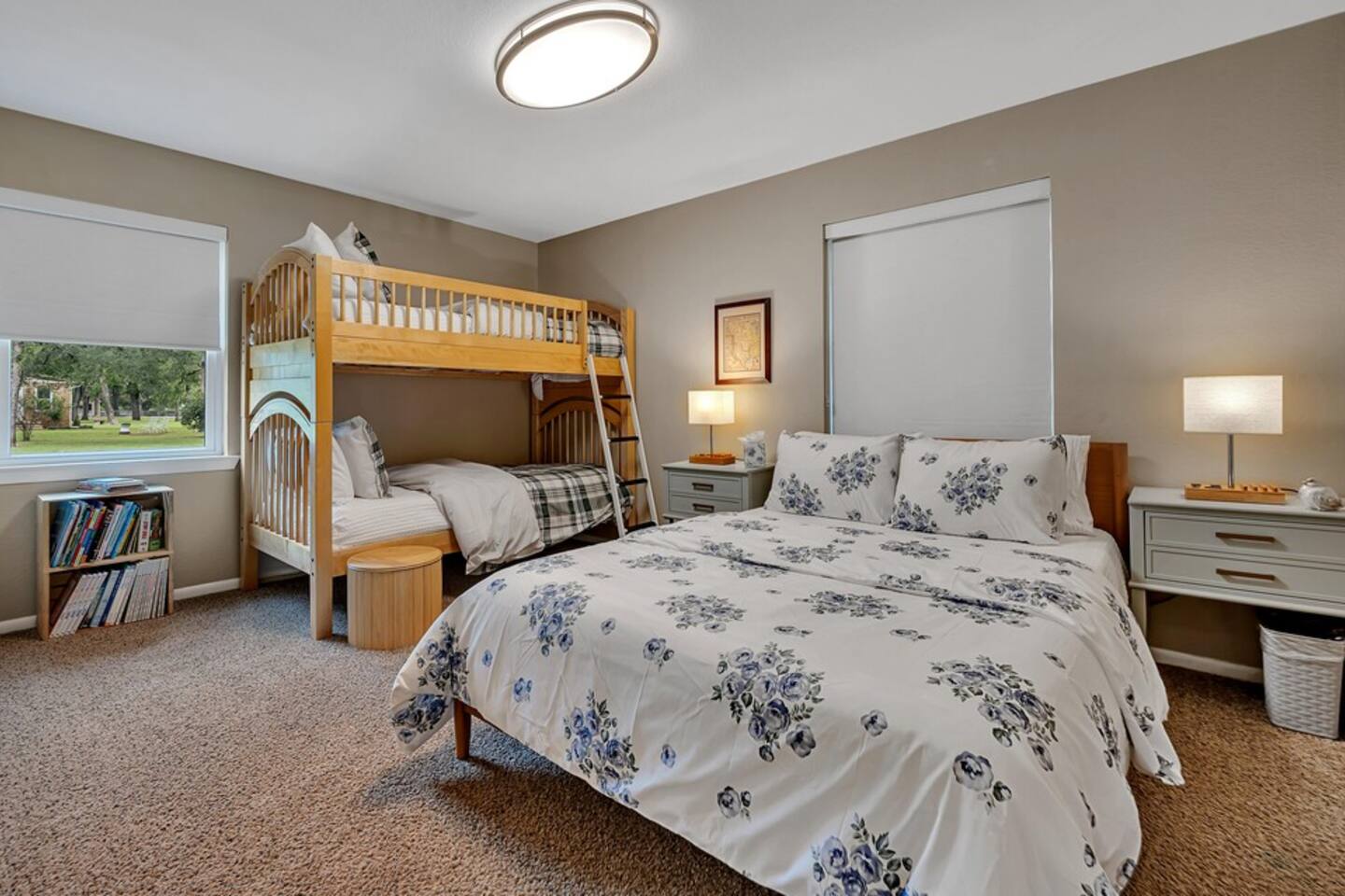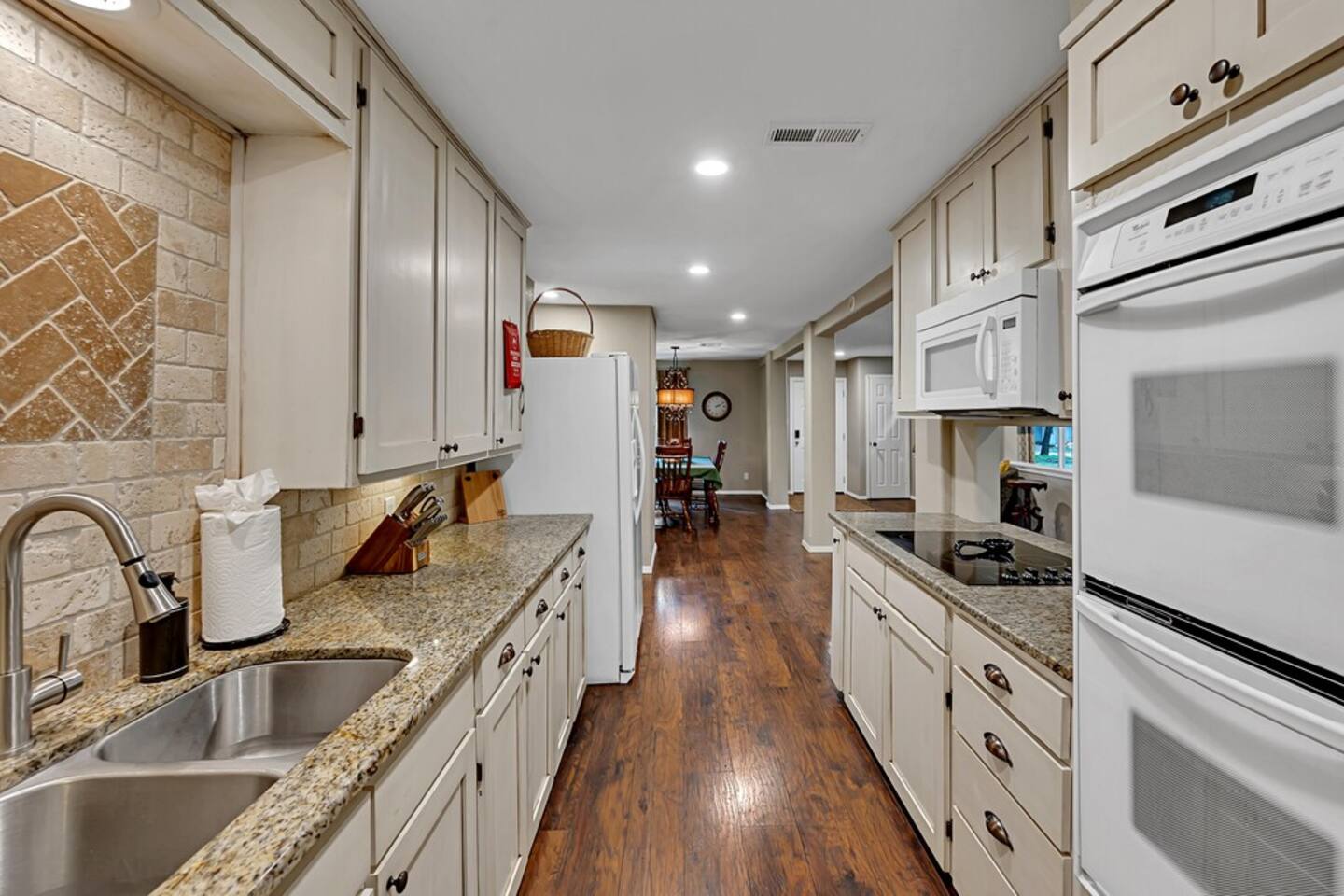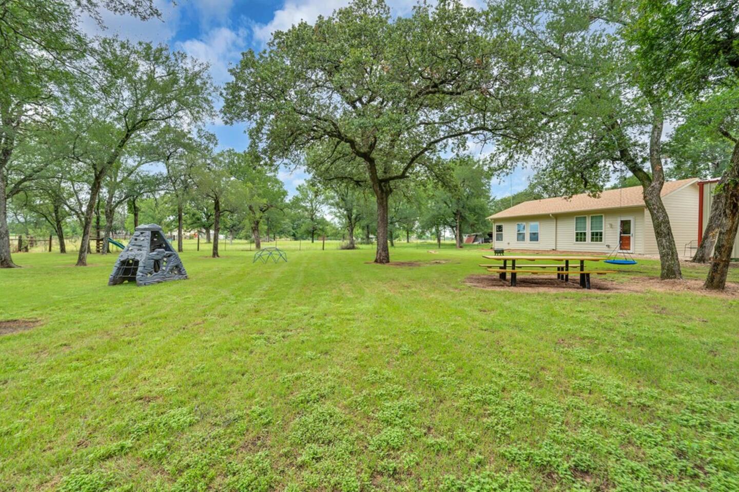 Brand New Listing! The Main House 3 bedrooms | 2 bathrooms | Sleeps 8 Spacious living area with a Smart TV and guest-friendly streaming logins Fully stocked kitchen for meals at home Washer/dryer, WiFi, and family-friendly touches throughout Layout: Bedroom 1: Queen size bed Bedroom 2: Queen size bed & twin size bunk beds Bedroom 3: Daybed with trundle (2 twins) The Second Home 2 bedrooms | 1 bathroom | Sleeps 4 Cozy layout perfect for kids or couples Private entry, kitchen, and bathroom Ideal for extended families or friends traveling together Layout: Bedroom 1: Queen size bed Bedroom 2: Queen size bed The Backyard — A Guest Favorite Gorgeous Texas sunsets Tree swing, cornhole, a climbing structure for kids, and firepit Open space for games, relaxing, or sipping wine under the stars Perfect setting for gathering, grilling, or making s’mores around the fire The donkeys are owned by the neighbors; however, can be seen hanging around the fence line often. LISTING: This listing is for BOTH homes. Price includes both homes; however, each home can be rented separately if preferred using the listing links below. Main House: airbnb.com/h/sunsetcornerwaco Guest House: airbnb.com/h/sunsetcottagewaco Whether you're here for a family vacation, girls’ getaway, or a Waco weekend adventure, Sunset Corner offers the space, comfort, and fun you’re looking for.