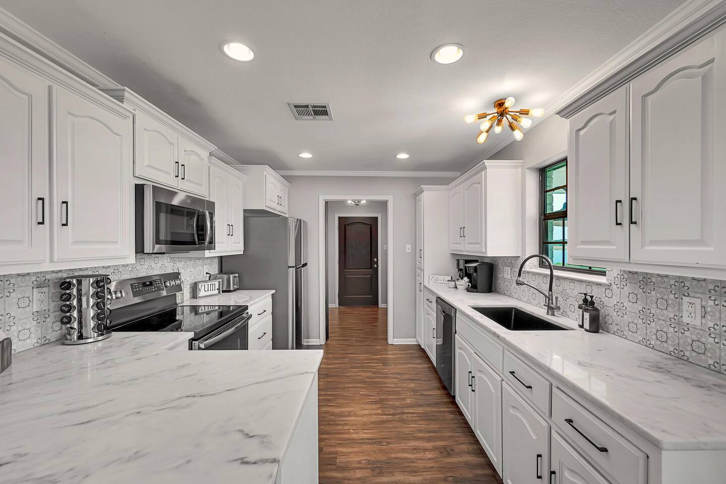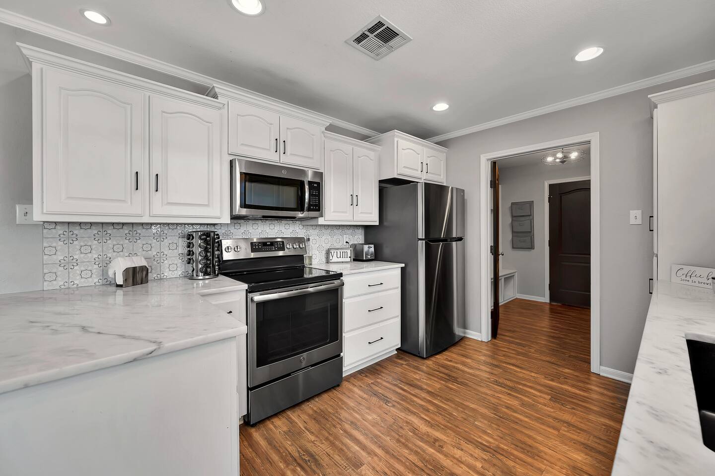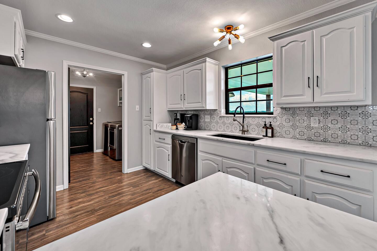 Don't let the lack of reviews for this newly listed beautiful home keep you from booking. It is one of the nicest and most appealing properties we manage. I wouldn't hesitate booking for my own family or friends. It has everything you need to enjoy a wonderful stay. Donnie K. Hall D&L Vacation Rentals The home has been remodeled with beautiful finishings including carrara marble countertops, shiplap accented walls in every room, a fun and unique bunk room, office nook, open-concept kitchen/living/dining, stainless steel appliances, secluded master suite, huge front porch the length of the home, covered back patio, and much more. Sleeps 10 including 2 roll out beds Room 1 includes 1 queen Room 2 is a bunk room with 4 twin beds Room 3 includes a king