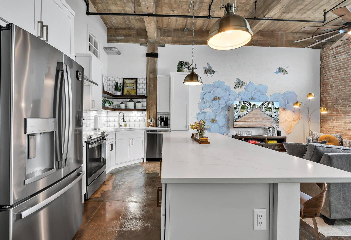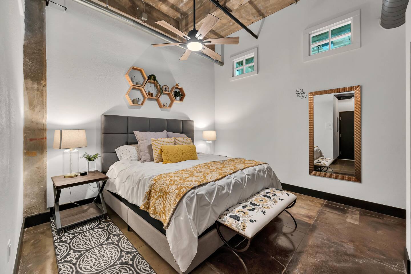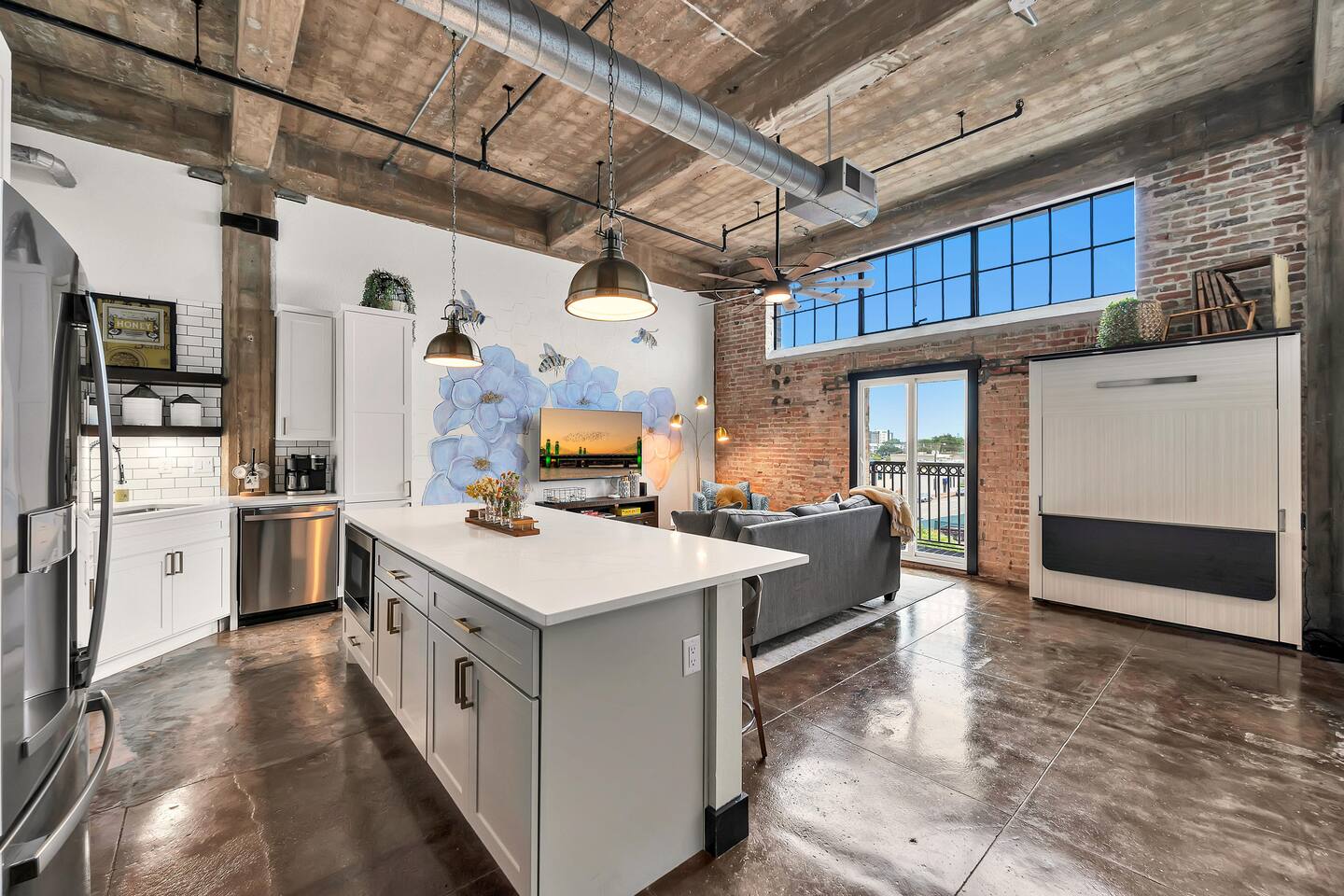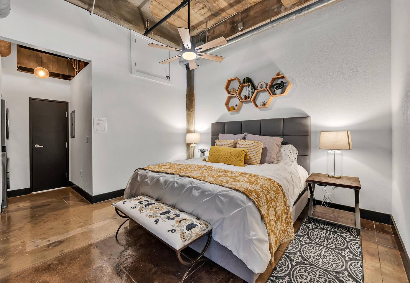 Welcome to The Beehive Loft, where vintage charm meets modern luxury in the heart of downtown Waco. This 1-bedroom, 1-bathroom condo sleeps up to 4 guests, with a plush bed in the private bedroom and a clever murphy bed in the living space that doubles as a desk. Whether you’re here for a weekend getaway or a work trip with flair, this loft offers everything you need in a truly memorable setting. Located on the third floor of a historic factory-turned-luxury-building, The Beehive features exposed brick, concrete floors, beautiful tilework, and chic urban styling throughout. The fully stocked kitchen is perfect for meals in, and the balcony with a downtown view is ideal for sipping coffee or winding down at sunset. When you're not out exploring the Magnolia Silos, Baylor campus, or downtown shopping (just minutes away), enjoy a cozy night in with cable TV and board games. And don’t worry about the hassle of downtown parking—this stay includes free, secure parking, a rare perk in this location. So ditch the car, hit the sidewalks, and experience Waco with style, comfort, and ease. The Beehive Loft is your sweet spot for staying downtown. STR000164-01-2022