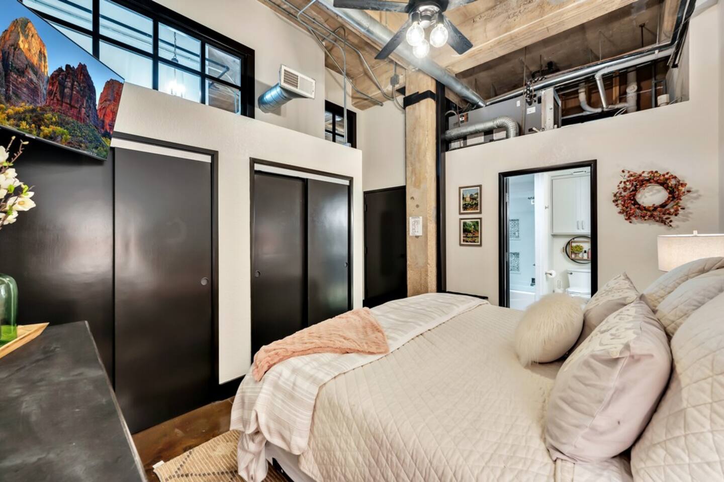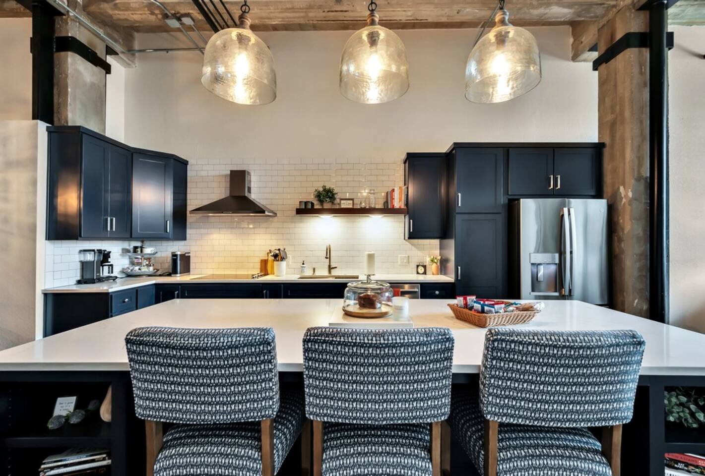This luxury downtown condo offers all the amenities of a cozy weekend away! Three large bedrooms and two spacious bathrooms provide all the space your group needs to spread out and relax. The large living, kitchen and dining room also offer luxury furnishings that every host dreams about! Thoughtful utility items like a reserved parking space, a utility cart for bringing up your luggage, a pack and play, luggage racks in each room - all show the extensive detail provide to make your stay as easy as possible. Other luxuries include Vitamix Blender, Dyson Hair Dryer in master bathroom, Keurig Coffee Maker and conventional coffee maker, Luxury Linens, Games and more!
