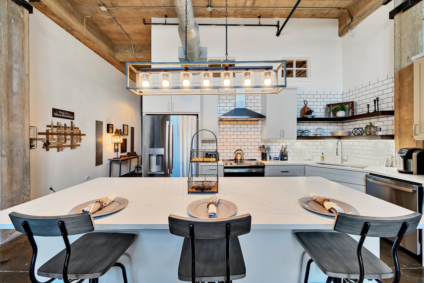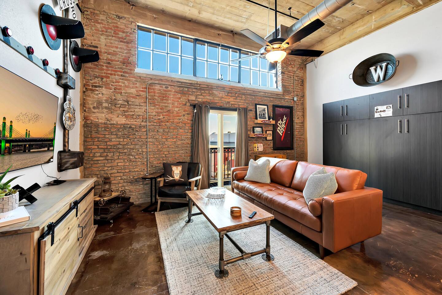 A ramp at the back of the building makes for easy access and there are two elevators inside the building. For Coffee - we have both a plain coffee maker, as well as a Keurig for which we provide some pods, creamers and sweetener. Smart TV with basic cable. Fable Bookshop located next door to The Behrens Lofts serving great pastries and coffee. This is a downtown location. Occasionally you will hear the train two blocks away and other noises associated with a downtown area. Must be 21 or older to book.