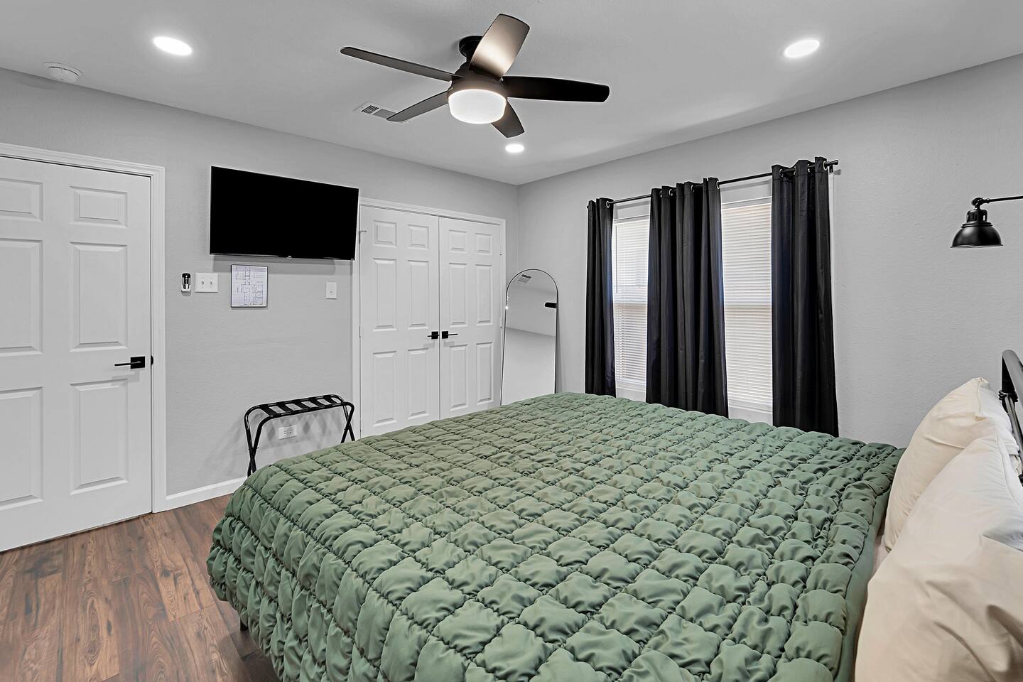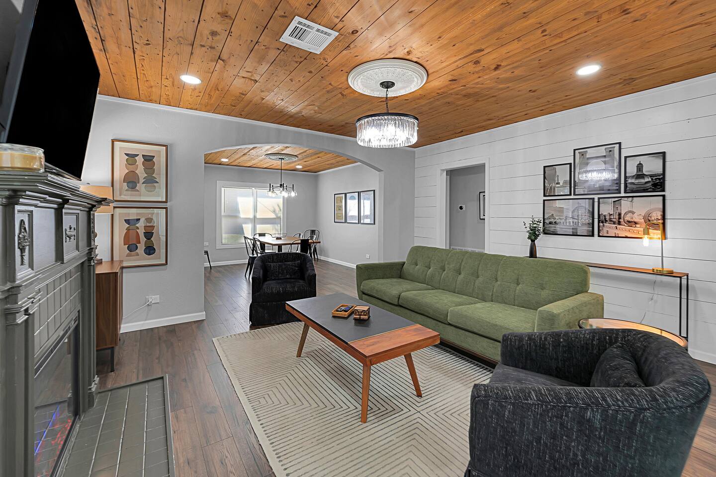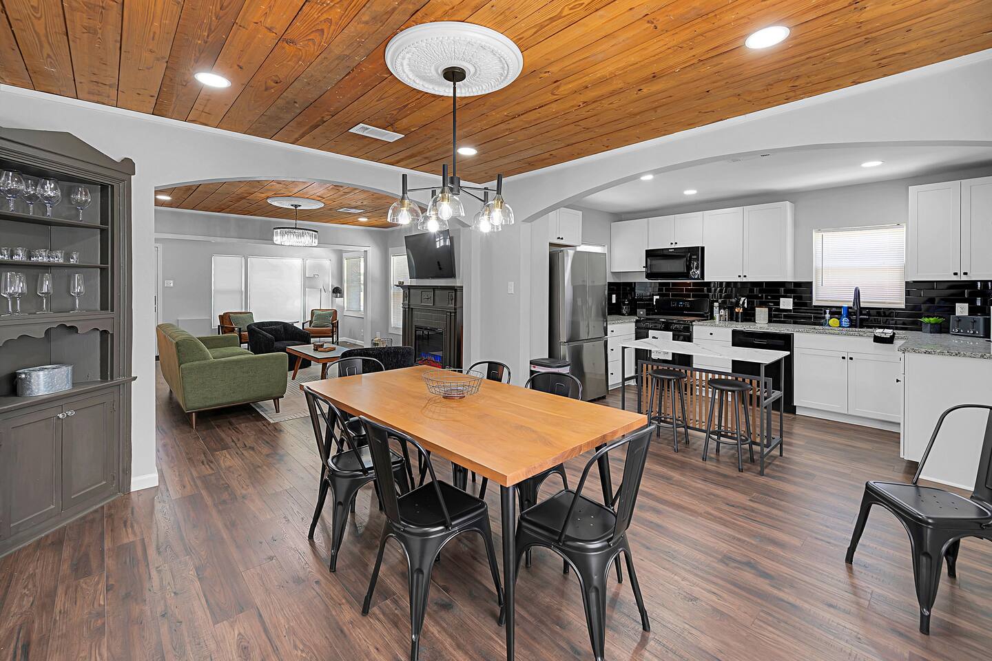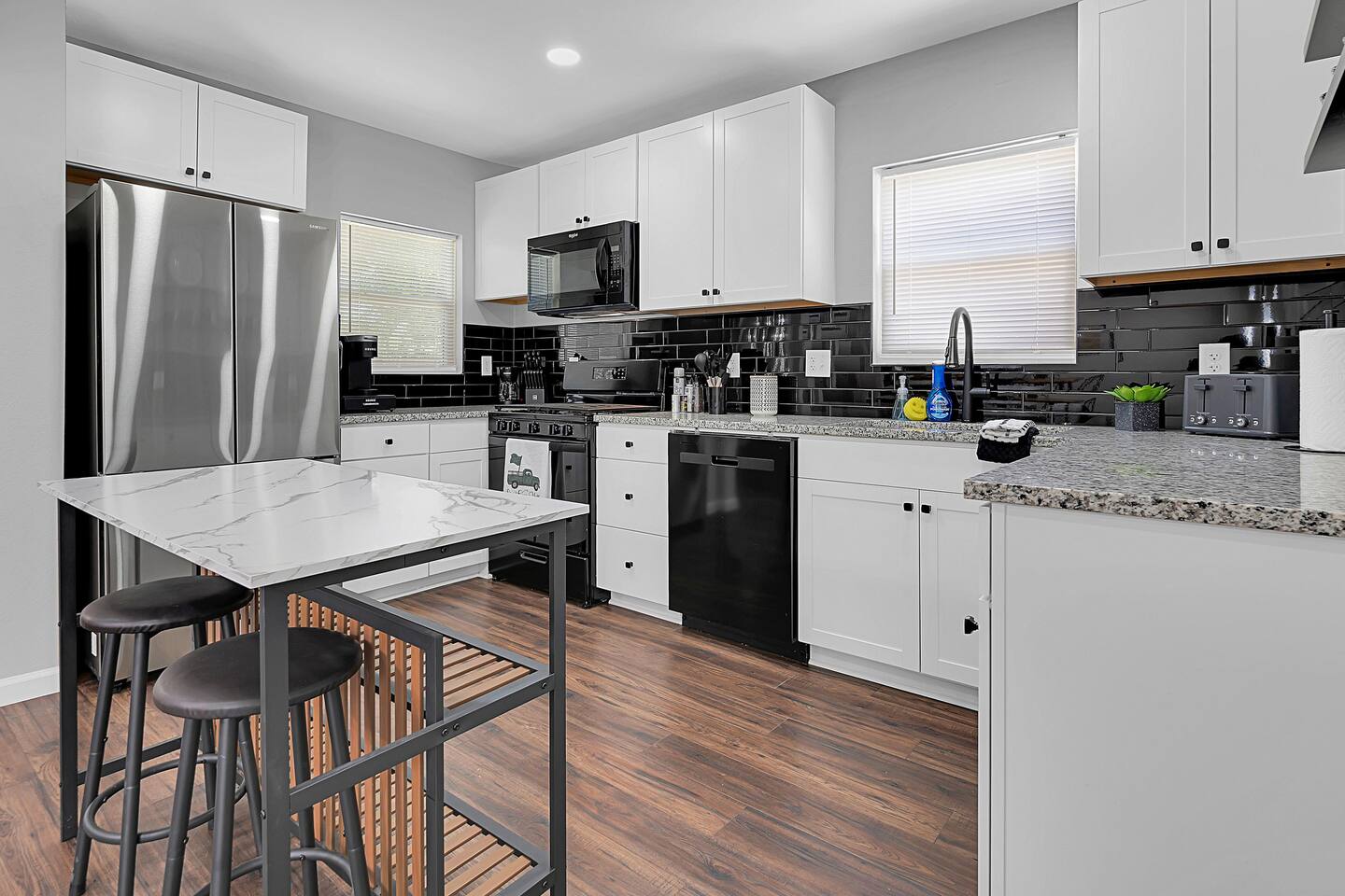 Step into the bright, open-concept living space—original shiplap, rustic wood ceilings, and a cozy new electric fireplace. The fully stocked kitchen features sleek black-and-white subway tile, granite countertops, and stainless steel appliances. Gather around the dining table for six, or relax in the spacious living area with a green velvet sofa and two inviting armchairs. Just off the main room, a bonus sitting area offers extra space to unwind in natural light—perfect for reading or morning coffee. A full-size washer and dryer are also available for your convenience. Each of the three bedrooms is designed for restful sleep, and both bathrooms have been thoughtfully updated with fresh finishes and modern fixtures. Backyard Escape The large, private backyard is perfect for enjoying Waco's beautiful evenings. String lights twinkle overhead as you sit around the fire pit, toast s’mores, or stargaze. There's plenty of room for yard games or simply lounging in the sun. Peace of Mind This home has been fully updated with new roofing, electrical, plumbing, and insulation—providing a safe, quiet, and comfortable stay. Location You’ll be close to all the best Waco has to offer: Baylor University – 17-minute walk or 3-minute drive Magnolia Market & Silos – A short drive away Dr Pepper Museum – Just minutes from your doorstep Cameron Park Zoo – A local favorite for family fun Whether you're visiting Waco for work, play, or a bit of both, this charming home offers a welcoming space to relax and recharge. Book your stay today and enjoy a perfect mix of location, comfort, and character! This is a brand new listing. Do not let the lack of reviews deter you! Check out our management page to read past reviews of fabulous stays with us. We are dedicated to providing quality stays. The Hines House is a beautiful property and is sure to be a favorite! License # STR-000532-05-2025