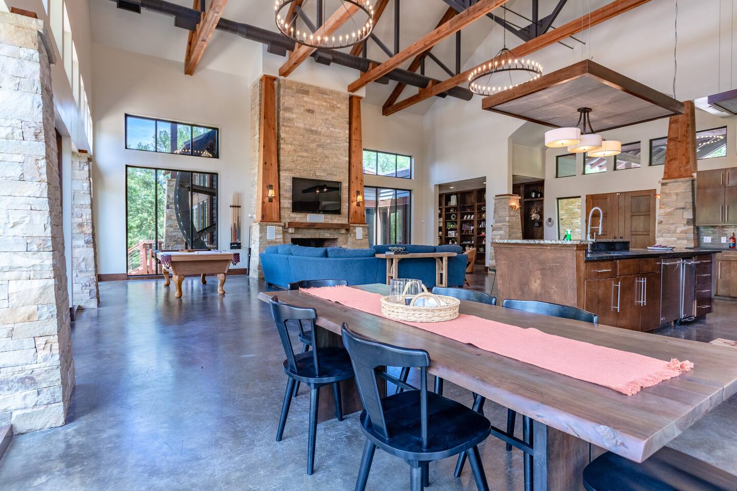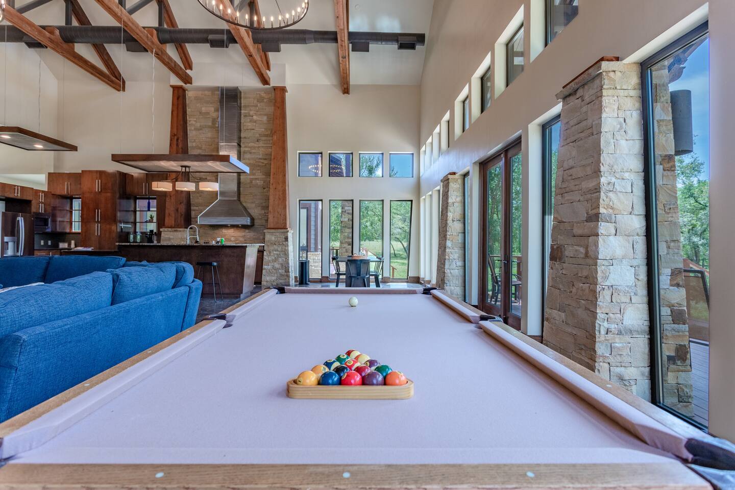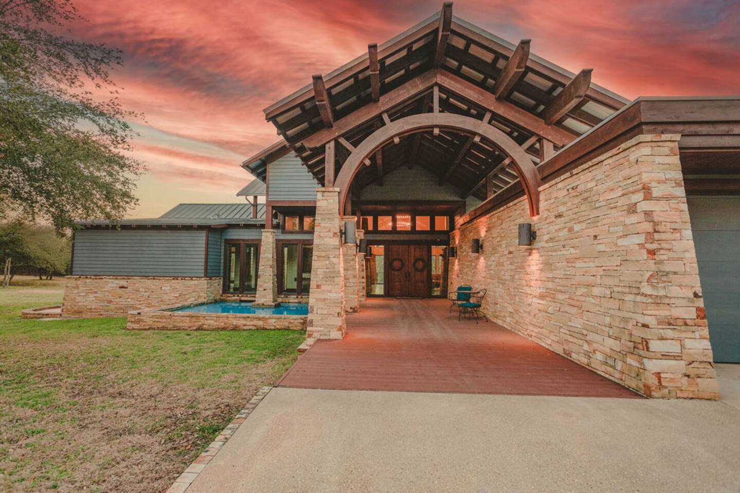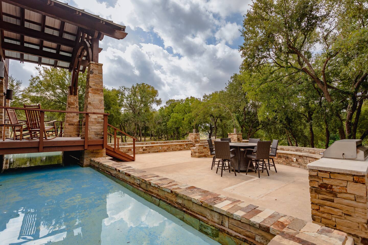 Step into the spacious living area featuring high ceilings framed by beautiful beams and sprawling windows framing panoramic views of the surrounding natural beauty. With 4 bedrooms and 4.5 bathrooms, our home offers a serene sanctuary for up to 14 guests. Sink into plush beds/bedding and wake up to the soothing sounds of the creek just outside. Each bedroom also includes an ensuite bathroom and 2 of the bedrooms house pull out couches for additional sleeping options. Relax and unwind in the spacious living area complete with pool & poker tables. Whether you're enjoying a movie night by the fireplace or hosting a gathering with loved ones, this inviting space sets the scene for unforgettable memories. Enjoy our fully equipped kitchen boasting modern appliances and ample counter space. Dine in style at the large dining table while taking in the views of the great outdoors. Step outside (with steaks in hand) to our charming bar and kitchen area. Grill up your favorite dishes while soaking in the ambiance of the surrounding nature. Don't forget to try your hand at fishing in the nearby creek, where you are welcome to cast a line and reel in the day's catch. Note: this creek water level depends the season and rainfall. We are conveniently located just 20 minutes from the vibrant city of Waco, TX. We feel our retreat offers the perfect blend of secluded serenity and easy access to local attractions. Explore the charm of downtown Waco, visit the iconic Magnolia Market, cheer on your favorite Baylor Bears or embark on outdoor adventures in the nearby parks. We are dedicated to ensuring that your stay exceeds expectations, and we're always available to assist with any questions or recommendations during your visit. This is a brand new listing for us, so do not worry about the lack of reviews! Check out our hosting rating & see our past guest reviews. We are local & love to see happy guests! Escape the hustle and bustle of everyday life and experience the ultimate in relaxation and luxury at our stunning creekside retreat. Book your stay with us today and make unforgettable memories in this beautiful oasis!