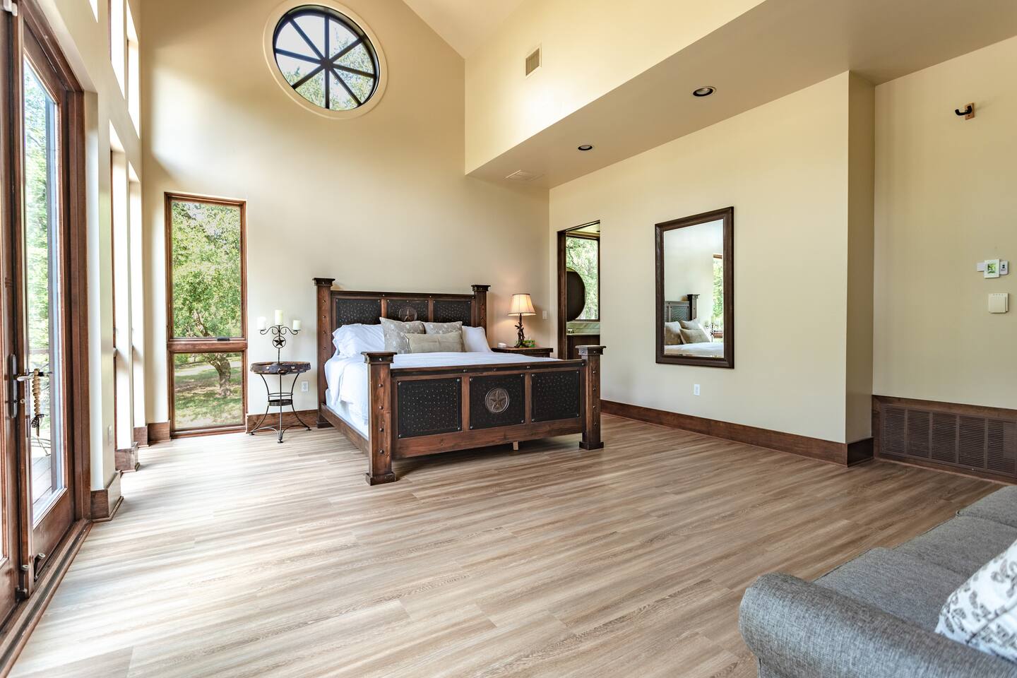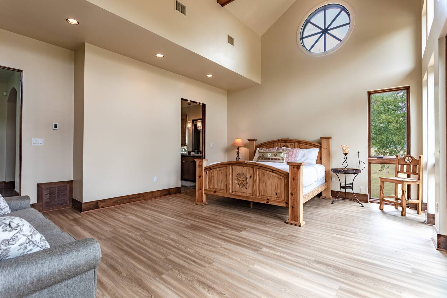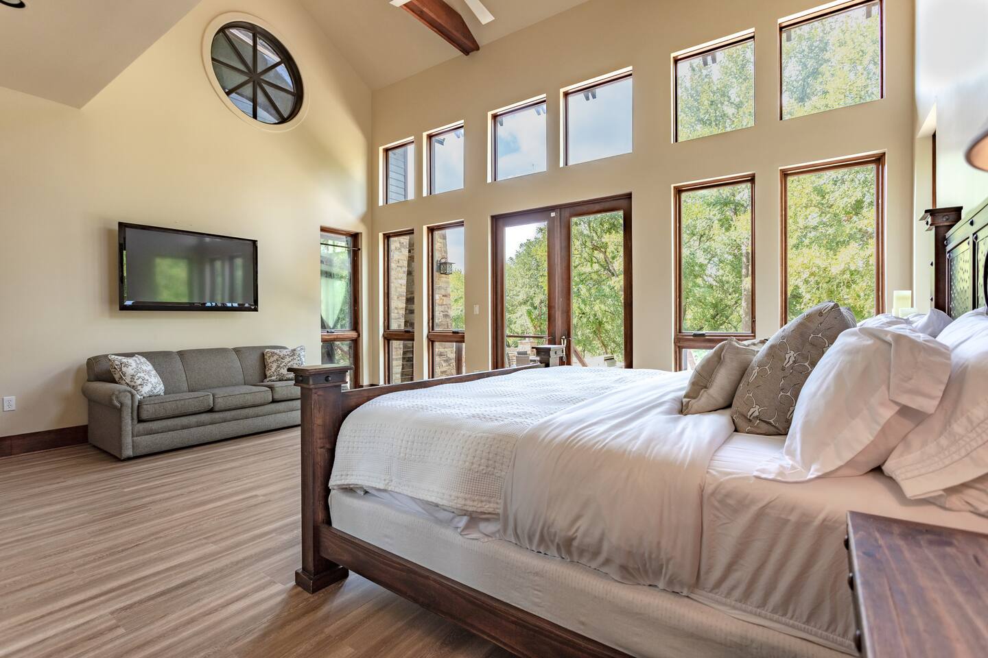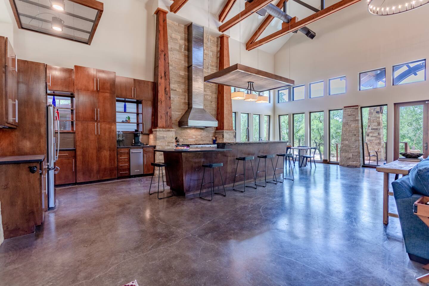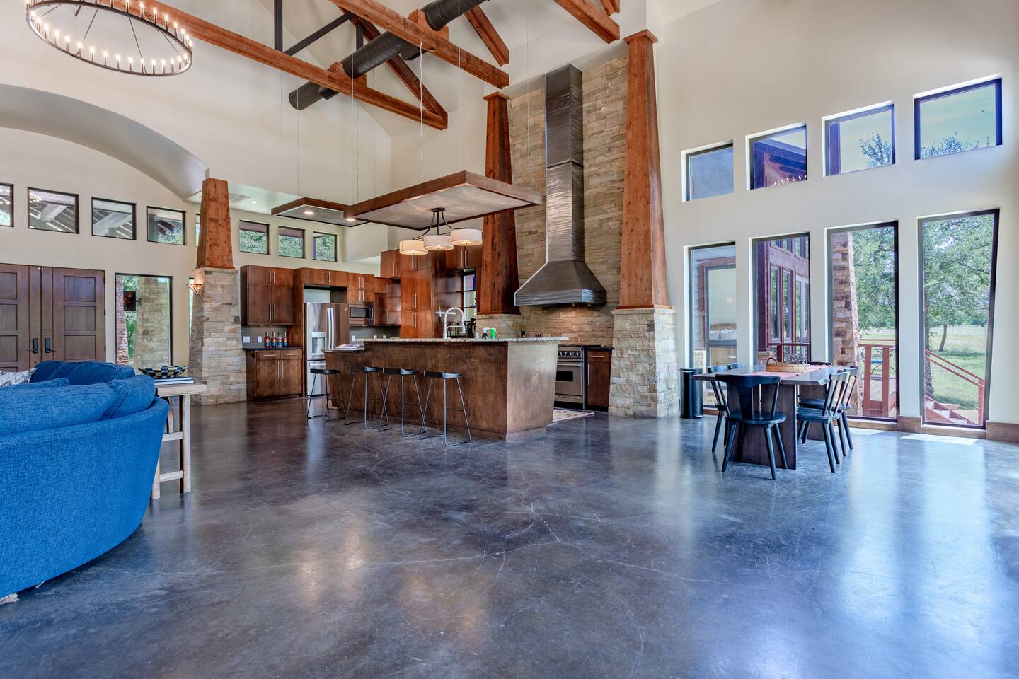 Step into the spacious living area featuring high ceilings framed by beautiful beams and sprawling windows framing panoramic views of the surrounding natural beauty. With 4 bedrooms and 4.5 bathrooms, our home offers a serene sanctuary for up to 14 guests. Sink into plush beds/bedding and wake up to the soothing sounds of the creek just outside. Each bedroom also includes an ensuite bathroom and 2 of the bedrooms house pull out couches for additional sleeping options. Relax and unwind in the spacious living area complete with pool & poker tables. Whether you're enjoying a movie night by the fireplace or hosting a gathering with loved ones, this inviting space sets the scene for unforgettable memories. Enjoy our fully equipped kitchen boasting modern appliances and ample counter space. Dine in style at the large dining table while taking in the views of the great outdoors. Step outside (with steaks in hand) to our charming bar and kitchen area. Grill up your favorite dishes while soaking in the ambiance of the surrounding nature. Don't forget to try your hand at fishing in the nearby creek, where you are welcome to cast a line and reel in the day's catch. Note: this creek water level depends the season and rainfall. We are conveniently located just 20 minutes from the vibrant city of Waco, TX. We feel our retreat offers the perfect blend of secluded serenity and easy access to local attractions. Explore the charm of downtown Waco, visit the iconic Magnolia Market, cheer on your favorite Baylor Bears or embark on outdoor adventures in the nearby parks. We are dedicated to ensuring that your stay exceeds expectations, and we're always available to assist with any questions or recommendations during your visit. This is a brand new listing for us, so do not worry about the lack of reviews! Check out our hosting rating & see our past guest reviews. We are local & love to see happy guests! Escape the hustle and bustle of everyday life and experience the ultimate in relaxation and luxury at our stunning creekside retreat. Book your stay with us today and make unforgettable memories in this beautiful oasis!