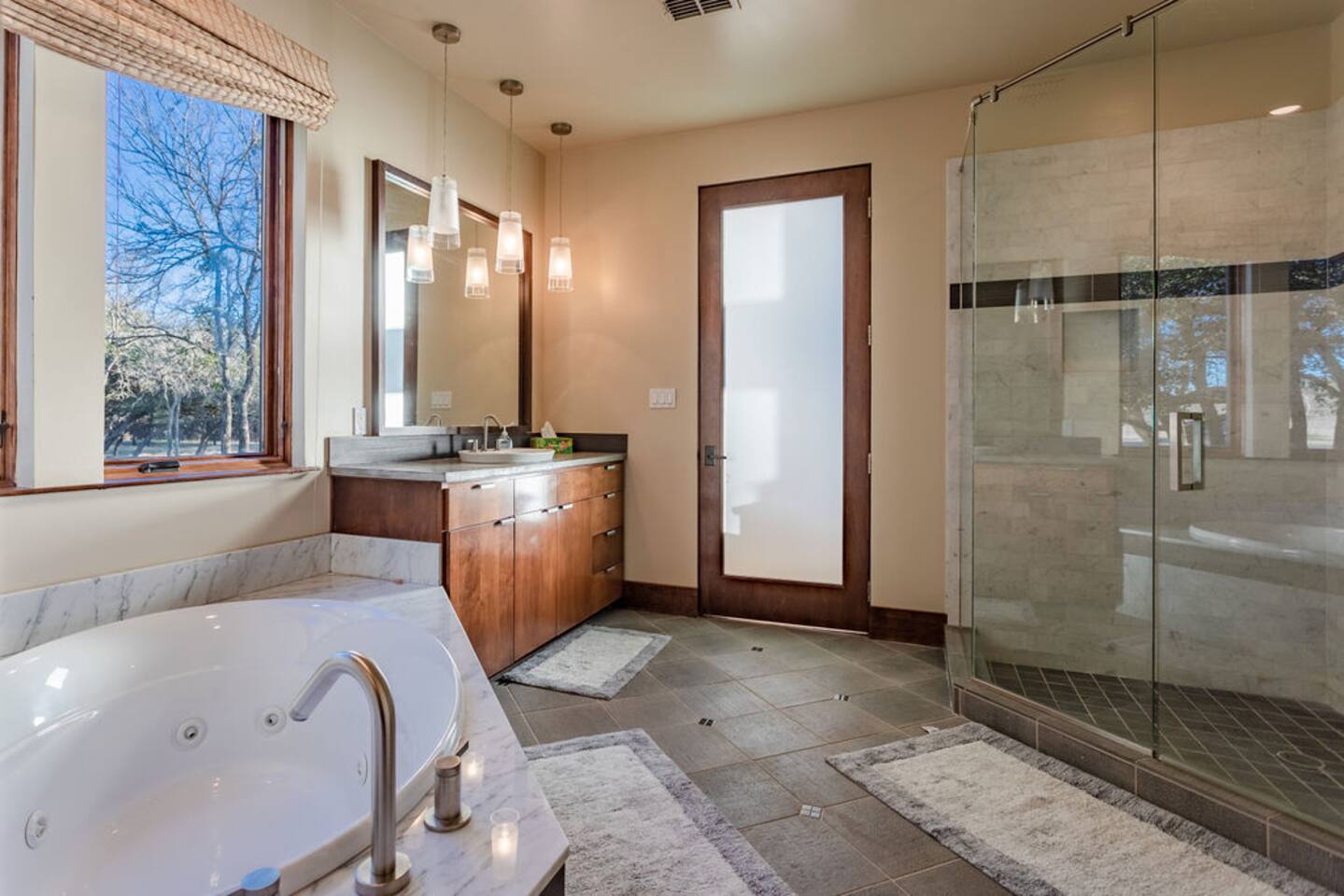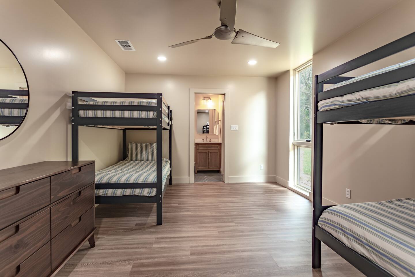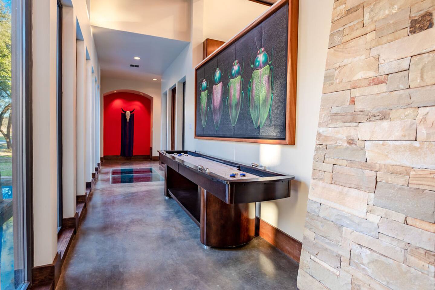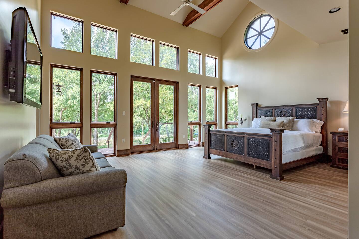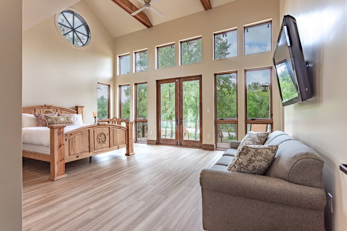 Step into the spacious living area featuring high ceilings framed by beautiful beams and sprawling windows framing panoramic views of the surrounding natural beauty. With 4 bedrooms and 4.5 bathrooms, our home offers a serene sanctuary for up to 14 guests. Sink into plush beds/bedding and wake up to the soothing sounds of the creek just outside. Each bedroom also includes an ensuite bathroom and 2 of the bedrooms house pull out couches for additional sleeping options. Relax and unwind in the spacious living area complete with pool & poker tables. Whether you're enjoying a movie night by the fireplace or hosting a gathering with loved ones, this inviting space sets the scene for unforgettable memories. Enjoy our fully equipped kitchen boasting modern appliances and ample counter space. Dine in style at the large dining table while taking in the views of the great outdoors. Step outside (with steaks in hand) to our charming bar and kitchen area. Grill up your favorite dishes while soaking in the ambiance of the surrounding nature. Don't forget to try your hand at fishing in the nearby creek, where you are welcome to cast a line and reel in the day's catch. Note: this creek water level depends the season and rainfall. We are conveniently located just 20 minutes from the vibrant city of Waco, TX. We feel our retreat offers the perfect blend of secluded serenity and easy access to local attractions. Explore the charm of downtown Waco, visit the iconic Magnolia Market, cheer on your favorite Baylor Bears or embark on outdoor adventures in the nearby parks. We are dedicated to ensuring that your stay exceeds expectations, and we're always available to assist with any questions or recommendations during your visit. This is a brand new listing for us, so do not worry about the lack of reviews! Check out our hosting rating & see our past guest reviews. We are local & love to see happy guests! Escape the hustle and bustle of everyday life and experience the ultimate in relaxation and luxury at our stunning creekside retreat. Book your stay with us today and make unforgettable memories in this beautiful oasis!