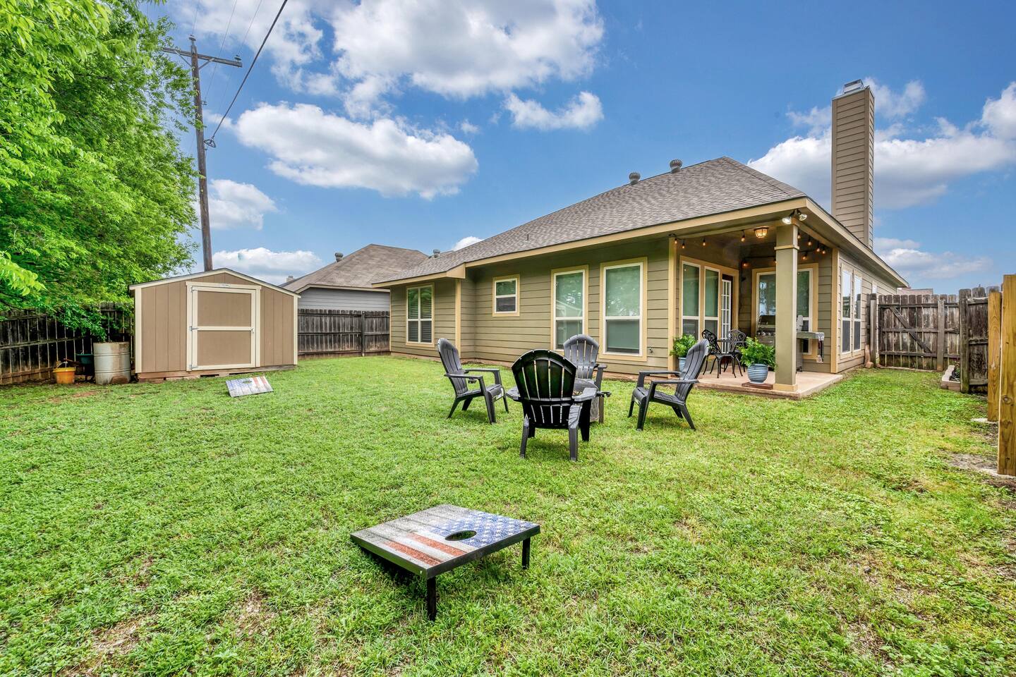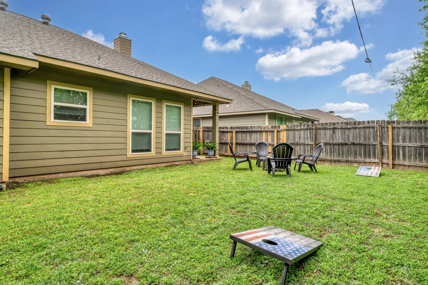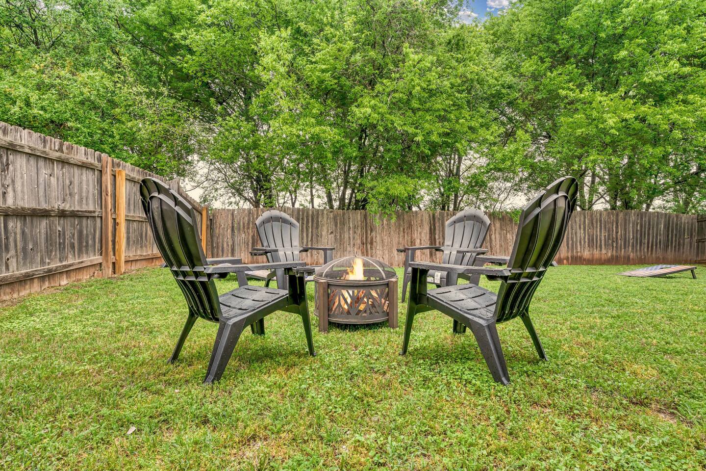 Welcome to your home away from home in beautiful Waco, Texas. This freshly updated 3-bedroom, 2-bathroom home offers a peaceful and comfortable retreat for families, couples, or friends looking to explore the area or simply relax and recharge. Located just 15 minutes from Downtown Waco, Magnolia Market, Baylor University, and Cameron Park Zoo, and only five minutes from Waco Regional Airport, this home is a convenient and inviting place to land. Relax and Recharge Indoors The open and cozy living room features a large sectional, perfect for movie nights, board games, or afternoon naps. With a large smart TV in the living room and in each bedroom, everyone can enjoy entertainment in their own space. Central A/C and heating, high-speed Wi-Fi, and an in-unit washer and dryer provide all the modern comforts you need for a stress-free stay. Sleep Soundly in 3 Comfortable Bedrooms Primary Suite with a King bed, private en suite bathroom, soaking tub, and walk-in shower Second Bedroom with a Queen bed Third Bedroom with twin bunk beds, ideal for kids or extra guests 2 Full Bathrooms stocked with fresh towels and essentials Cook and Dine with Ease The fully equipped kitchen includes everything you need to prepare meals, plus a dining table perfect for gathering over breakfast or dinner. Prefer takeout? Waco’s top restaurants are just a short drive away. Backyard Fun and Outdoor Living Step into the private backyard for outdoor relaxation and connection. Firepit for evening chats and marshmallow roasting Grill for easy outdoor cooking Cornhole and room to enjoy the fresh air Whether you’re sipping coffee on the patio or exploring Waco’s favorite spots, this home offers the perfect blend of comfort and convenience.
