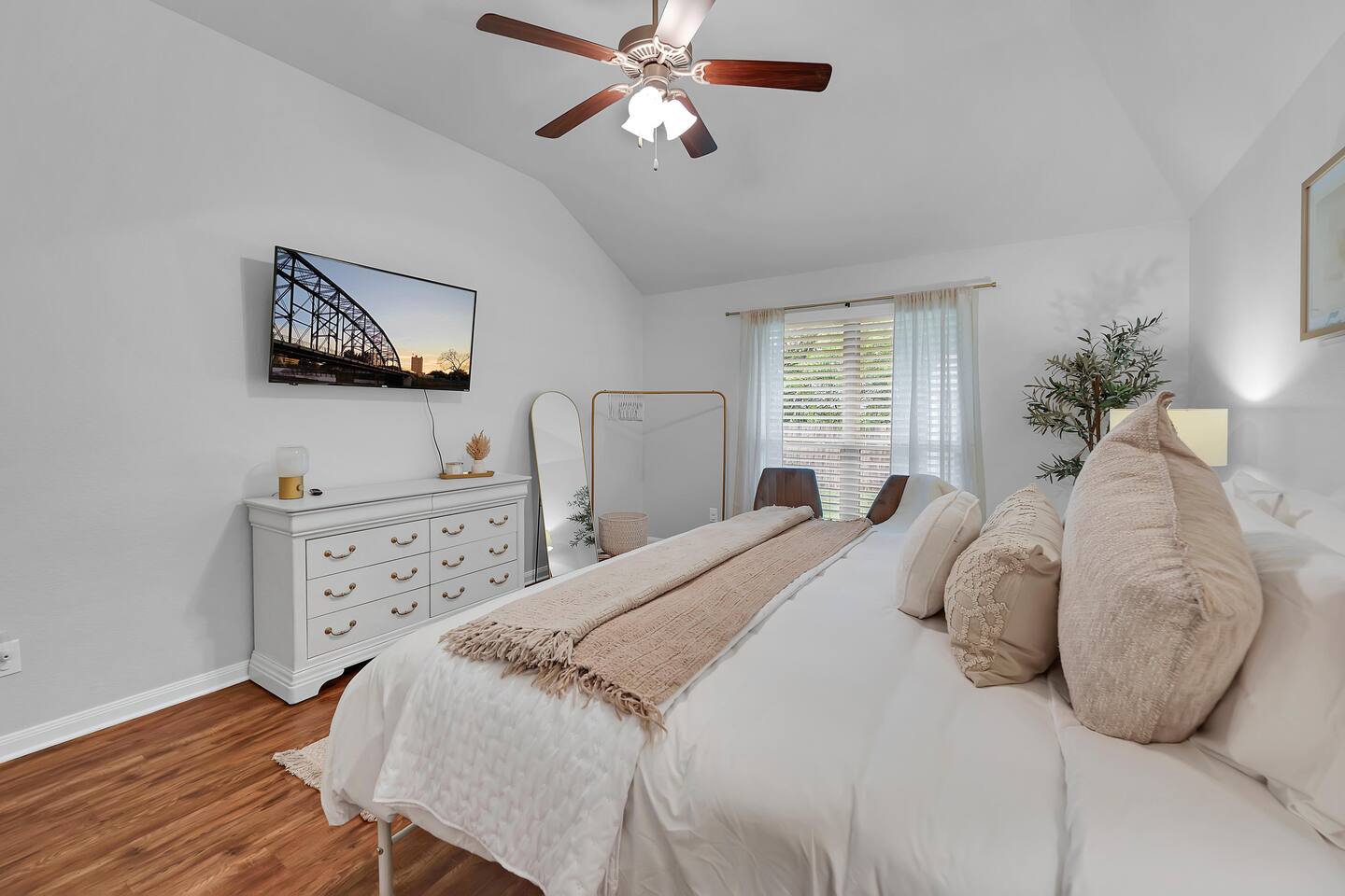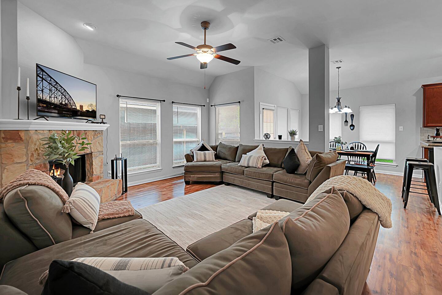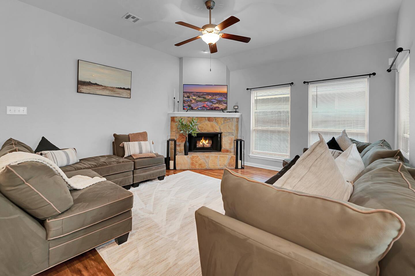 Welcome to your home away from home in beautiful Waco, Texas. This freshly updated 3-bedroom, 2-bathroom home offers a peaceful and comfortable retreat for families, couples, or friends looking to explore the area or simply relax and recharge. Located just 15 minutes from Downtown Waco, Magnolia Market, Baylor University, and Cameron Park Zoo, and only five minutes from Waco Regional Airport, this home is a convenient and inviting place to land. Relax and Recharge Indoors The open and cozy living room features a large sectional, perfect for movie nights, board games, or afternoon naps. With a large smart TV in the living room and in each bedroom, everyone can enjoy entertainment in their own space. Central A/C and heating, high-speed Wi-Fi, and an in-unit washer and dryer provide all the modern comforts you need for a stress-free stay. Sleep Soundly in 3 Comfortable Bedrooms Primary Suite with a King bed, private en suite bathroom, soaking tub, and walk-in shower Second Bedroom with a Queen bed Third Bedroom with twin bunk beds, ideal for kids or extra guests 2 Full Bathrooms stocked with fresh towels and essentials Cook and Dine with Ease The fully equipped kitchen includes everything you need to prepare meals, plus a dining table perfect for gathering over breakfast or dinner. Prefer takeout? Waco’s top restaurants are just a short drive away. Backyard Fun and Outdoor Living Step into the private backyard for outdoor relaxation and connection. Firepit for evening chats and marshmallow roasting Grill for easy outdoor cooking Cornhole and room to enjoy the fresh air Whether you’re sipping coffee on the patio or exploring Waco’s favorite spots, this home offers the perfect blend of comfort and convenience.